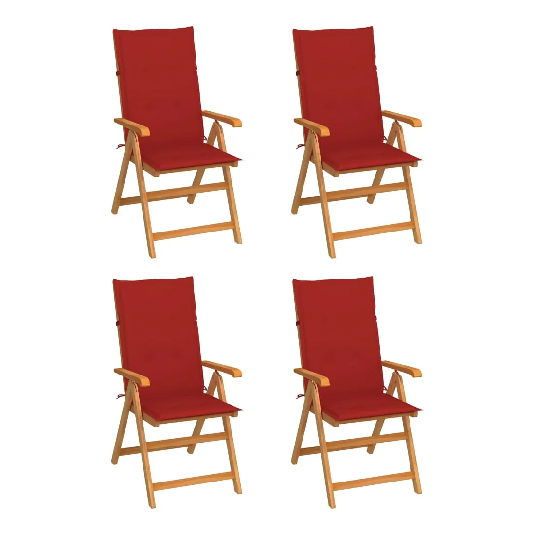 Chaises de jardin lot de 4 avec coussins rouge Bois teck massif