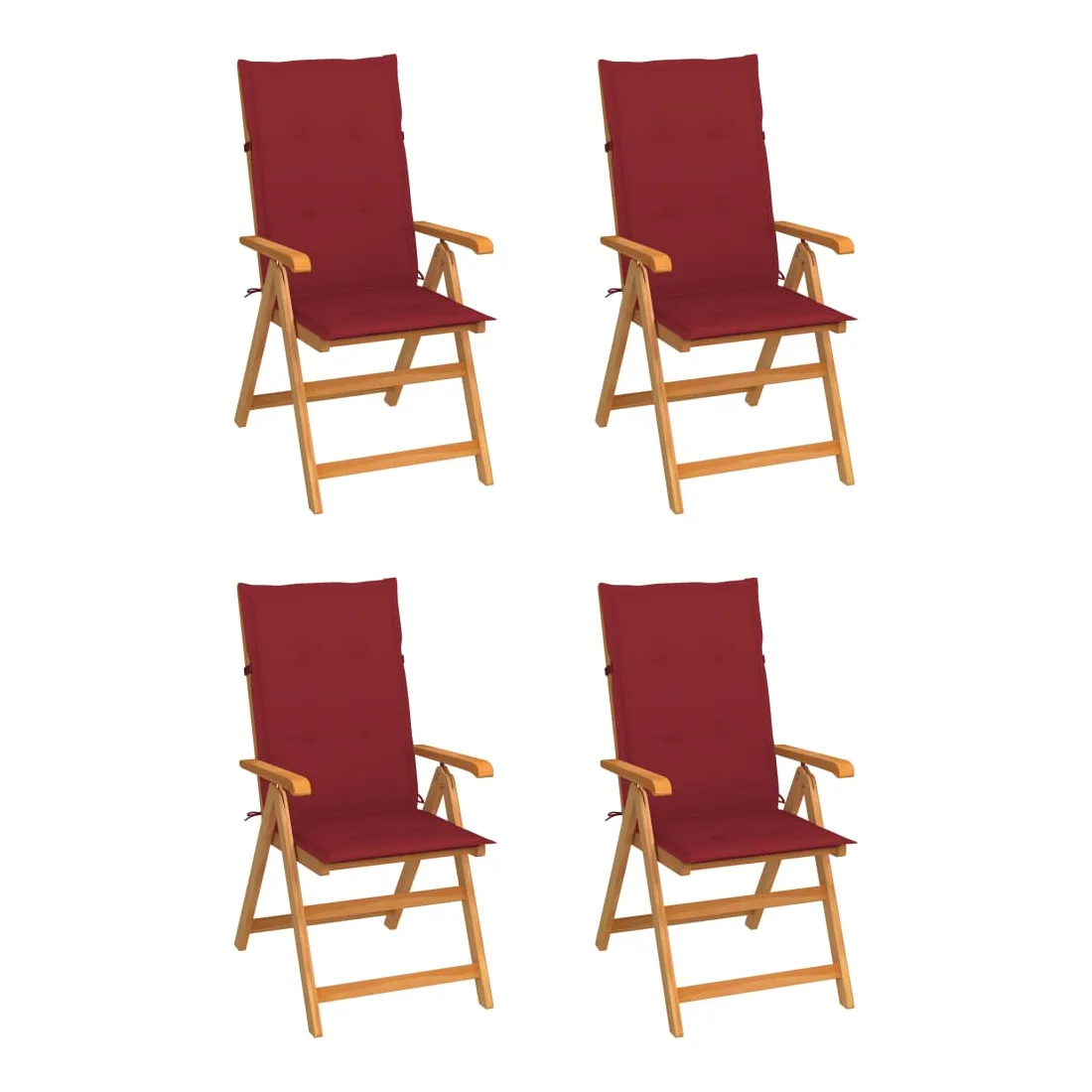 Chaises de jardin lot de 4 avec coussins bordeaux Teck solide