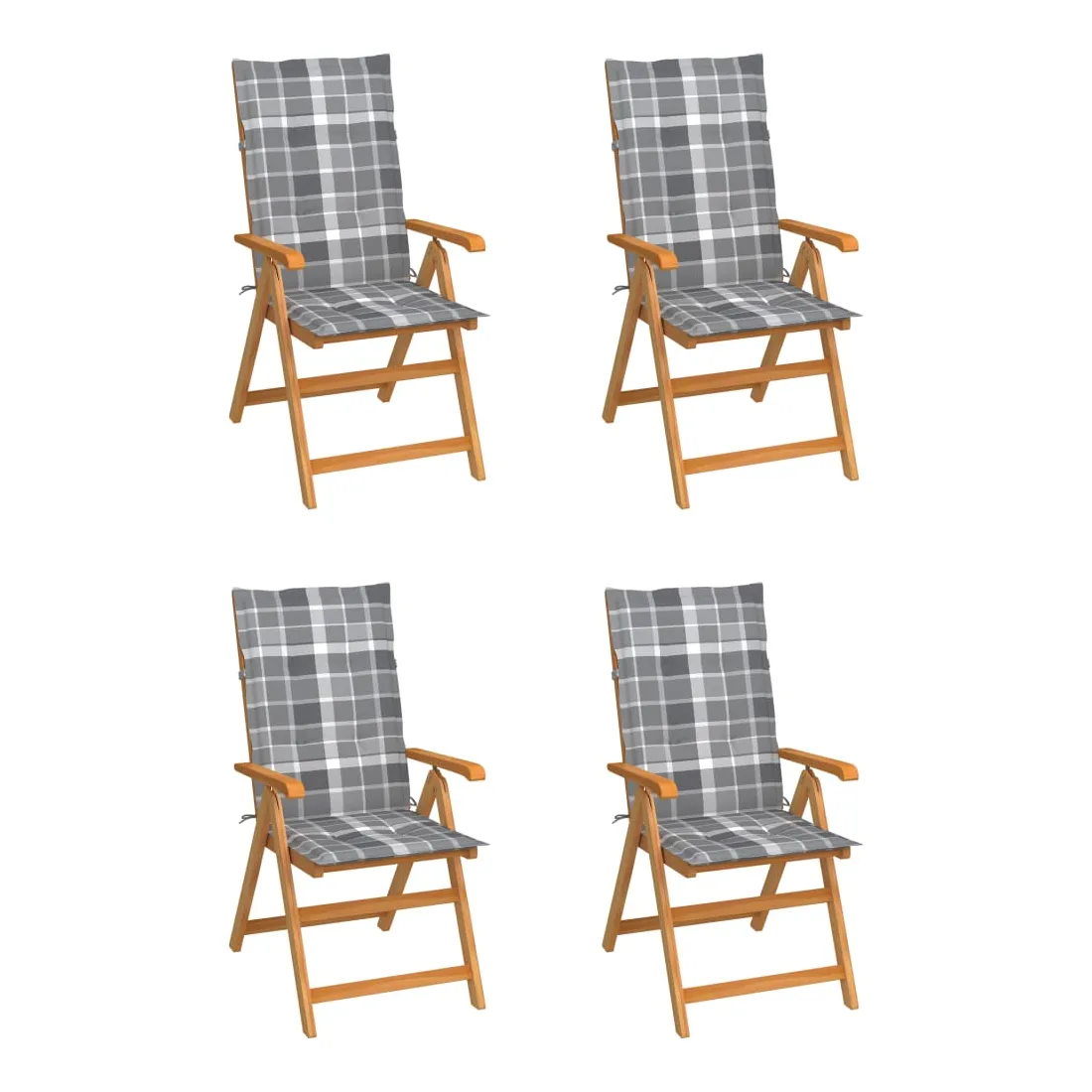 Chaises de jardin lot de 4 coussins à carreaux gris Teck solide