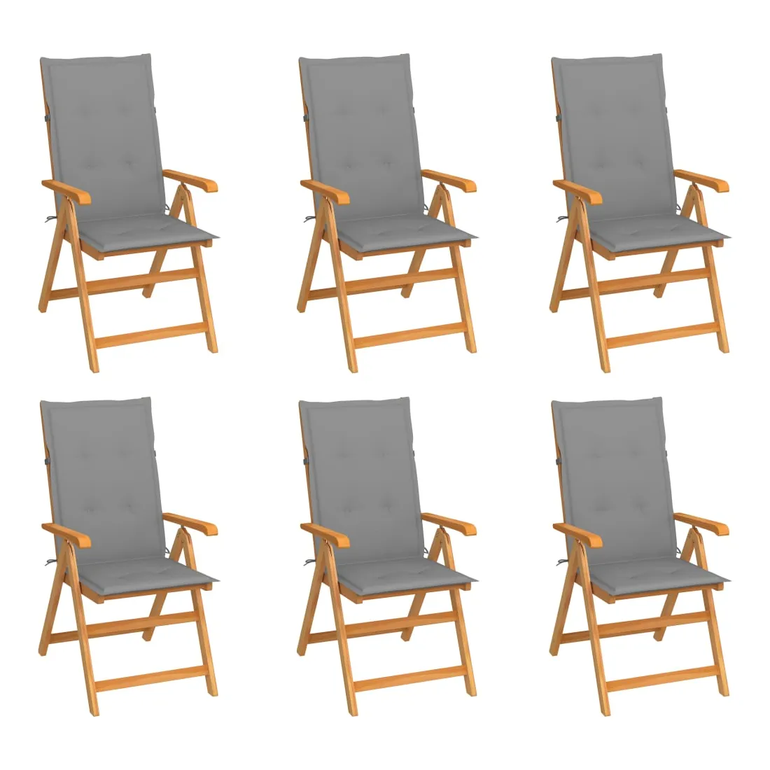 Chaises de jardin lot de 6 avec coussins gris Bois teck massif