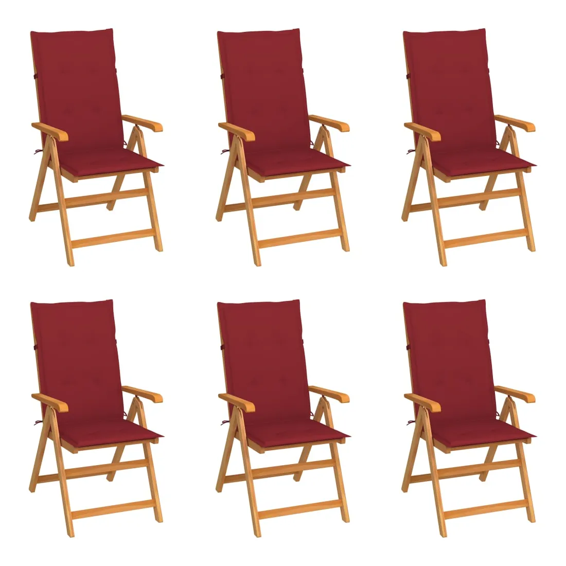 Chaises de jardin lot de 6 avec coussins bordeaux Bois de teck