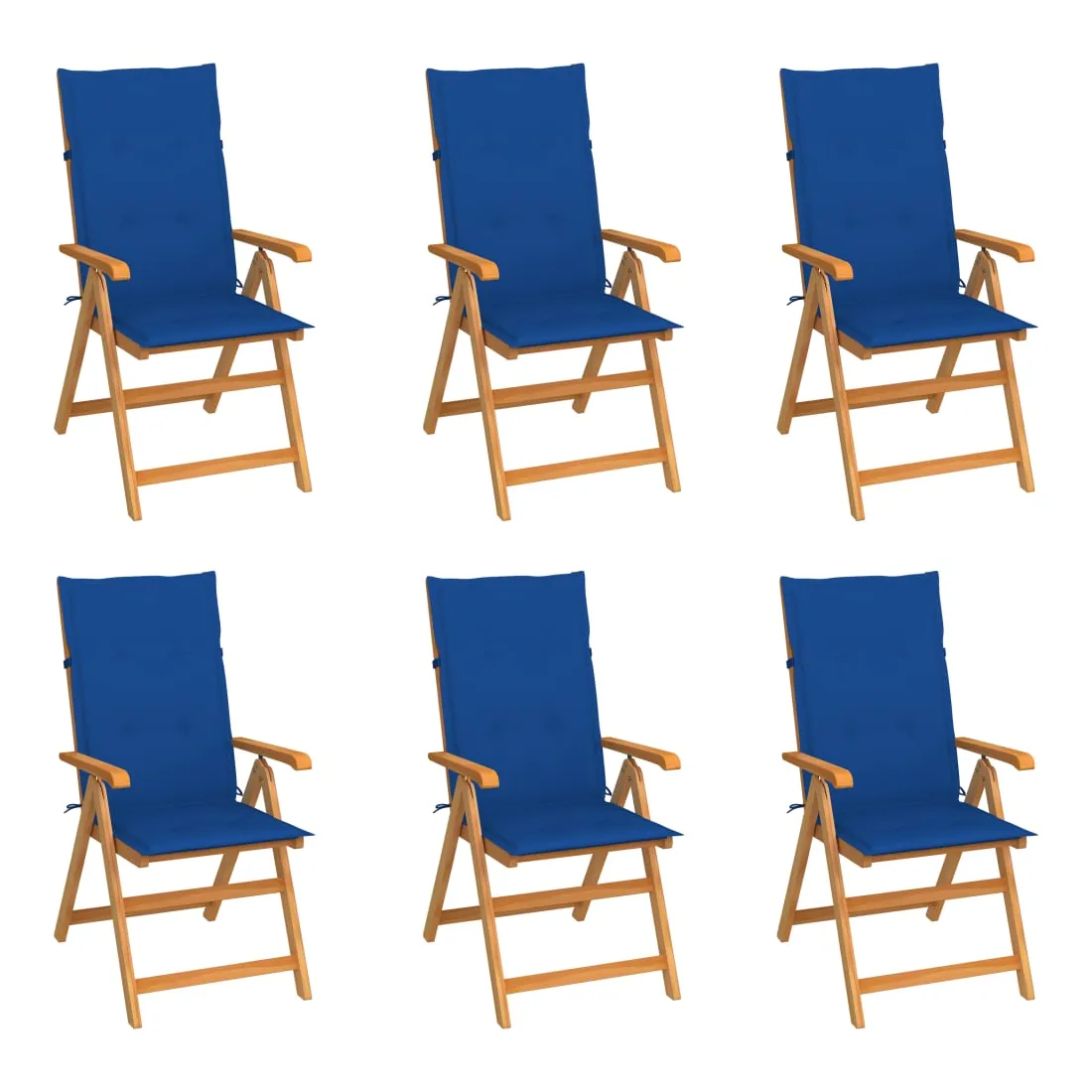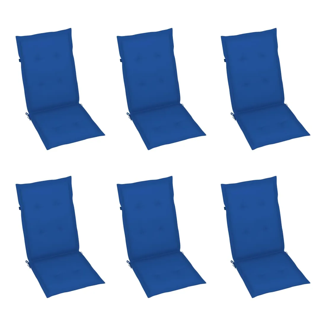 Chaises de jardin lot de 6 avec coussins bleu royal Bois teck