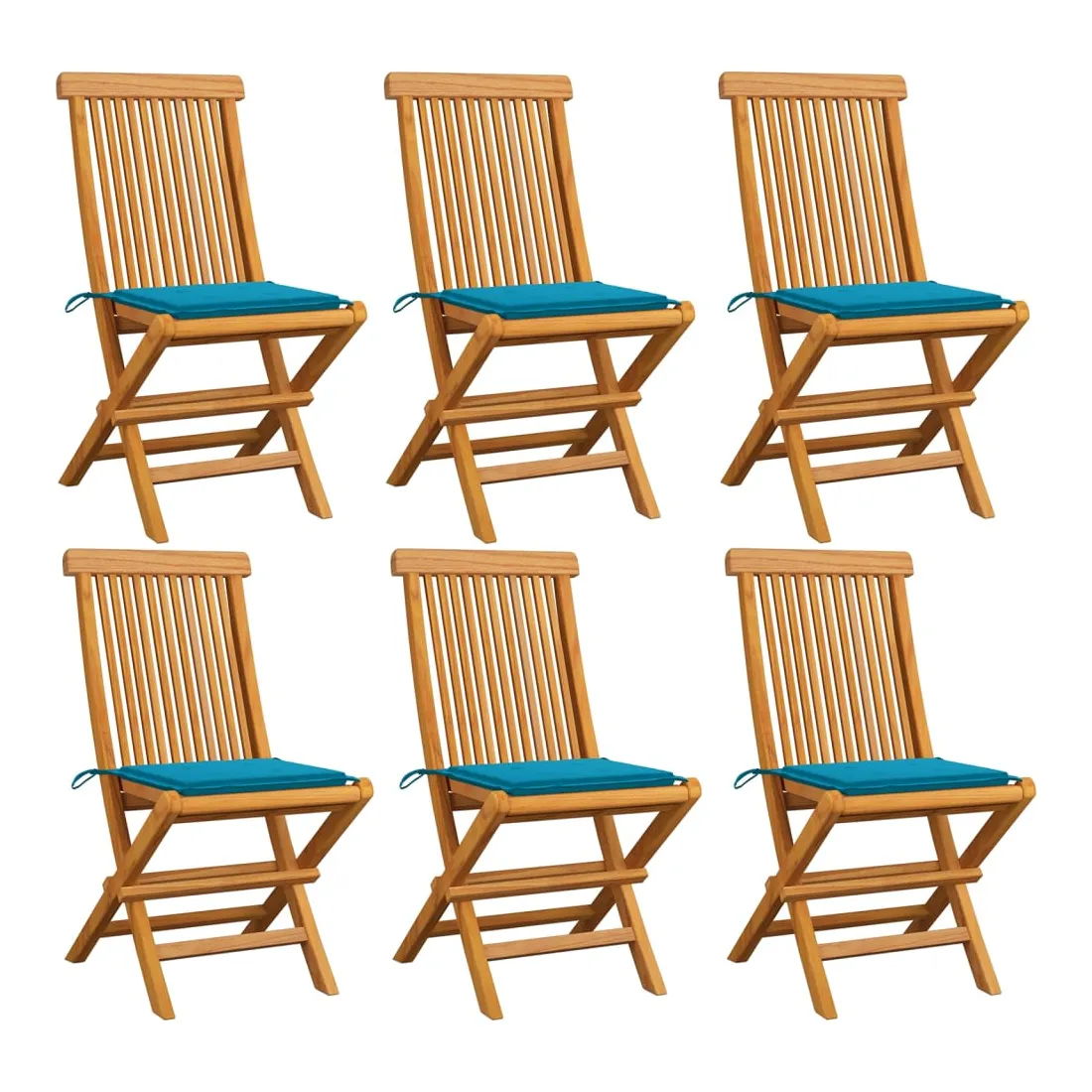 Chaises de jardin et coussins bleu lot de 6 Bois de teck massif