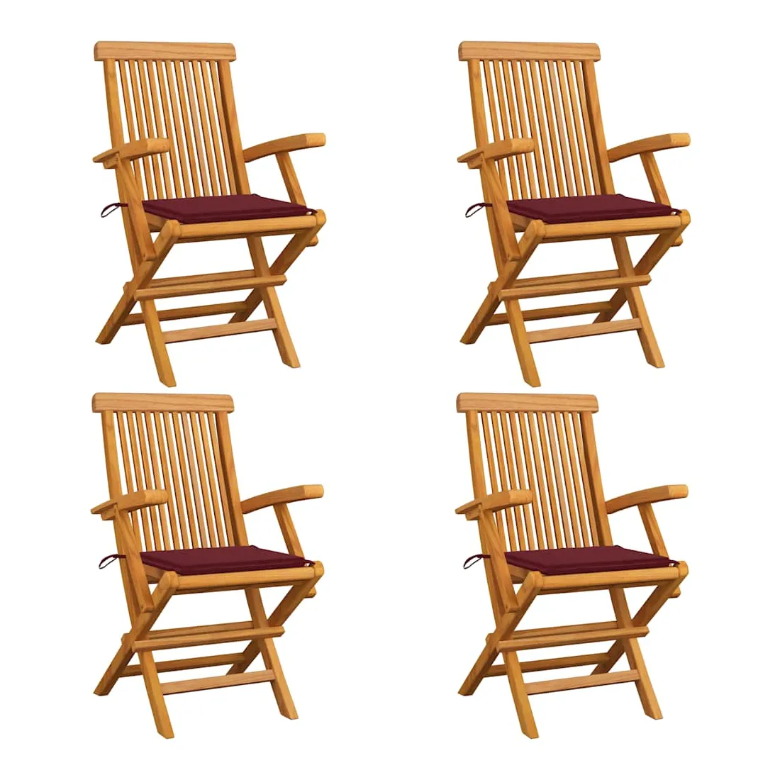 Chaises de jardin avec coussins rouge bordeaux lot de 4 Teck