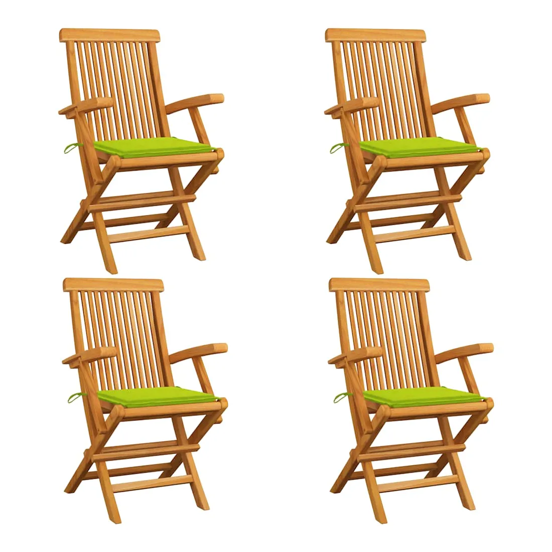 Chaises de jardin avec coussins vert vif lot de 4 Bois de teck