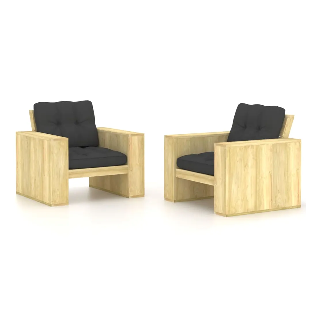 Chaises de jardin lot de 2 et coussins anthracite Pin imprégné