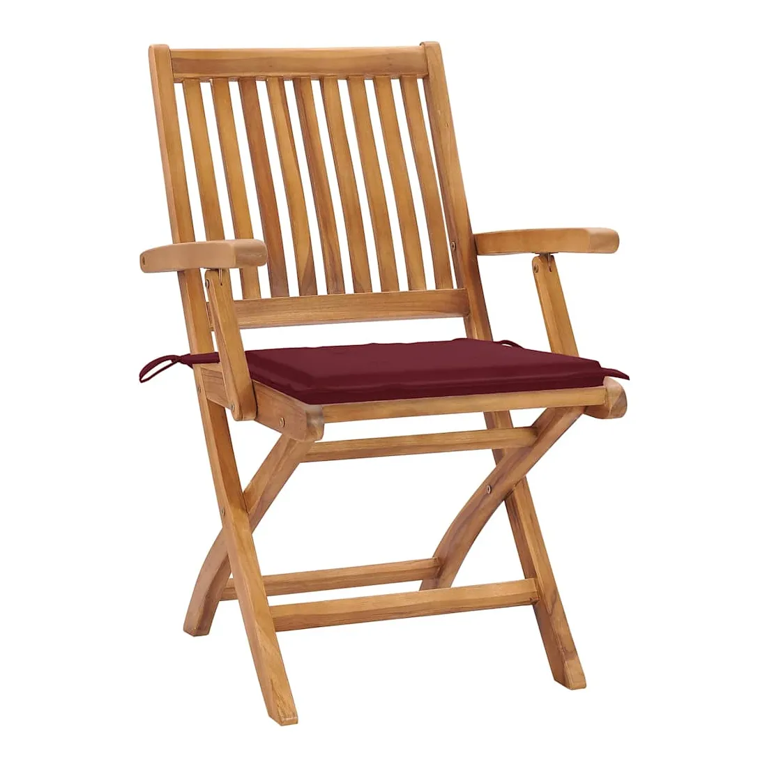 Cet ensemble de chaises de jardin en bois présente un design intemporel. Les chaises d’extérieur conviennent à tous les environnements, tels que les maisons, les bureaux, les bars et les cafés, grâce à leur design simple mais élégant. Fabriqué en bois dur de teck extrêmement durable, cet ensemble de meubles en teck a été chevronné, séché au four puis finement poncé pour lui donner un aspect très lisse. Le bois de teck est connu pour sa résistance exceptionnelle aux intempéries, ce qui le rend bien plus adapté aux meubles de jardin que tout autre type de bois. Le bois de teck est le choix idéal si vous souhaitez acheter un meuble de jardin durable. Grâce à la surface sablée, les chaises de salle à manger sont résistantes aux intempéries et faciles à nettoyer. Elles peuvent également être pliées pour économiser de l’espace de stockage lorsqu'elles ne sont pas utilisées. De plus, les coussins fournis offrent un confort supplémentaire. Chaque coussin dispose de 2 ensembles de cordes pour le fixer solidement sur la chaise. Remarque : afin de prolonger la durée de vie de vos meubles d'extérieur, nous vous recommandons de les nettoyer régulièrement et de ne pas les laisser à l'extérieur sans protection inutilement.Nettoyage : utiliser une solution savonneuse douceStockage : si possible, stockez dans un endroit frais et sec à l'intérieur. Si le produit est stocké à l'extérieur, protégez-le avec une housse imperméable. Essuyez et séchez l'excès d'eau ou de neige des surfaces planes après la pluie ou une chute de neige. Permettez une circulation d'air suffisante afin d'éviter les dommages liés à l'humidité.