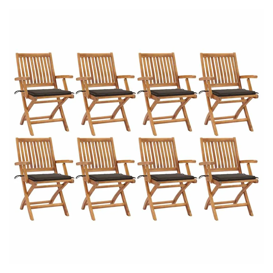 Chaises pliables de jardin avec coussins lot de 8 Teck solide