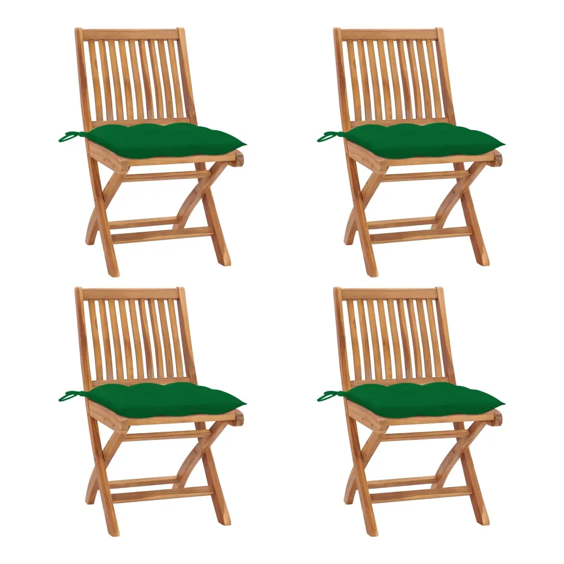 Chaises pliables de jardin avec coussins lot de 4 Teck solide