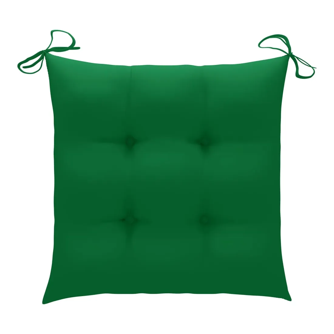 Cet ensemble de chaises de jardin en bois présente un design intemporel. Les chaises d’extérieur conviennent à tous les environnements, tels que les maisons, les bureaux, les bars et les cafés, grâce à leur design simple mais élégant. Fabriqué en bois dur de teck extrêmement durable, cet ensemble de meubles en teck a été chevronné, séché au four puis finement poncé pour lui donner un aspect très lisse. Le bois de teck est connu pour sa résistance exceptionnelle aux intempéries, ce qui le rend bien plus adapté aux meubles de jardin que tout autre type de bois. Le bois de teck est le choix idéal si vous souhaitez acheter un meuble de jardin durable. Grâce à la surface sablée, les chaises de salle à manger sont résistantes aux intempéries et faciles à nettoyer. Elles peuvent également être pliées pour économiser de l’espace de stockage lorsqu'elles ne sont pas utilisées. De plus, les coussins fournis offrent un confort supplémentaire. Chaque coussin dispose de 2 ensembles de cordes pour le fixer solidement sur la chaise. Remarque : afin de prolonger la durée de vie de vos meubles d'extérieur, nous vous recommandons de les nettoyer régulièrement et de ne pas les laisser à l'extérieur sans protection inutilement.Nettoyage : utiliser une solution savonneuse douceStockage : si possible, stockez dans un endroit frais et sec à l'intérieur. Si le produit est stocké à l'extérieur, protégez-le avec une housse imperméable. Essuyez et séchez l'excès d'eau ou de neige des surfaces planes après la pluie ou une chute de neige. Permettez une circulation d'air suffisante afin d'éviter les dommages liés à l'humidité.