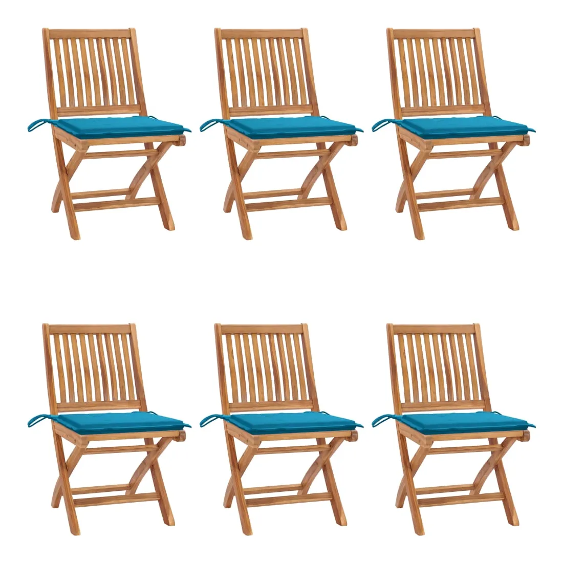 Chaises pliables de jardin avec coussins lot de 6 Bois de teck