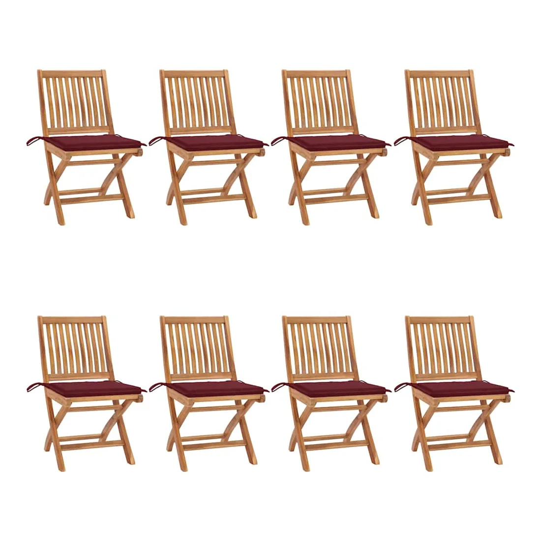 Chaises pliables de jardin avec coussins lot de 8 Teck solide