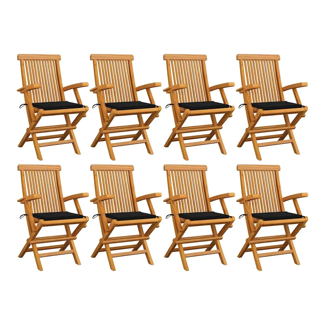 Cet ensemble de chaises de jardin en bois se compose de 8 pièces et est destiné à être un excellent supplément à votre jardin, terrasse ou patio. Vous pouvez vous détendre et discuter avec la famille et les amis ou profiter du bon temps. Fabriquée en bois dur de teck extrêmement durable, cette pièce de meuble en teck a été chevronnée, séchée au four puis finement poncée pour lui donner un aspect très lisse. Le bois de teck est connu pour sa résistance exceptionnelle aux intempéries, ce qui le rend bien plus adapté aux meubles de jardin que tout autre type de bois. Le bois de teck est le choix idéal si vous souhaitez acheter une pièce de meubles de jardin durable. La surface poncée est facile à nettoyer avec un chiffon humide. Ces chaises d'extérieur sont également légères, ce qui les rend complètement flexibles et faciles à déplacer. Les chaises en bois peuvent être pliées pour gagner de la place lorsqu'elles ne sont pas utilisées. De plus, les coussins de siège inclus offrent également un confort d'assise supplémentaire. Remarque : afin de prolonger la durée de vie des meubles d'extérieur, nous vous recommandons de les protéger avec une housse imperméable.