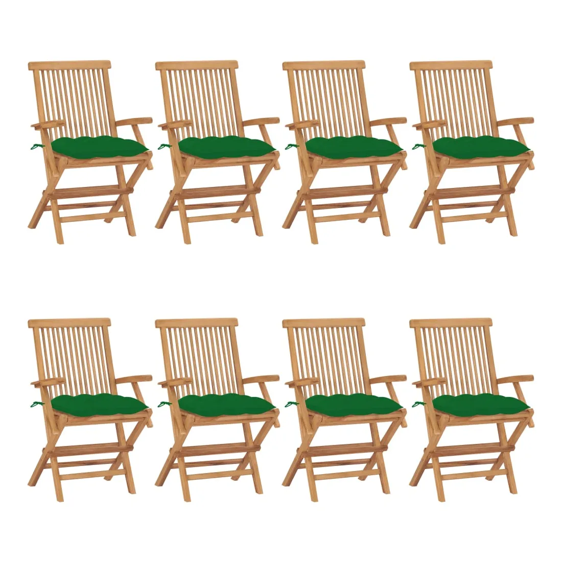 Chaises de jardin avec coussins vert lot de 8 Bois teck massif