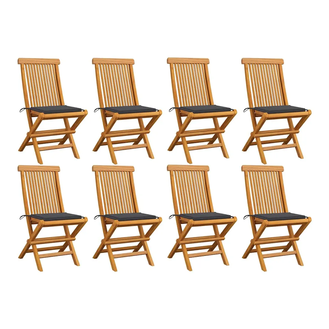 Chaises de jardin avec coussins anthracite lot de 8 Teck massif
