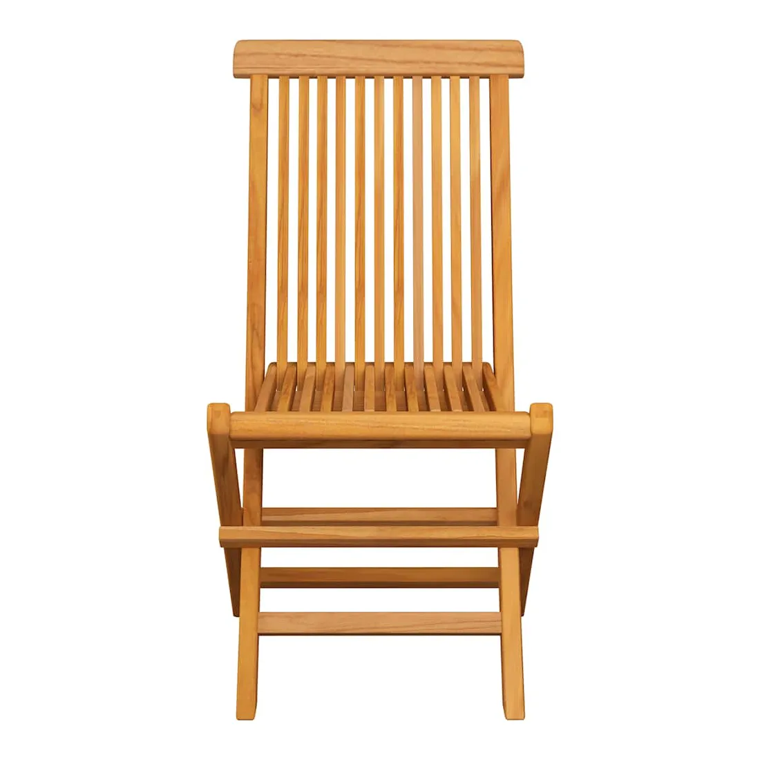 Ces chaises de jardin pliables en bois, au design simple pourtant élégant, sont conçues pour vous offrir une expérience d'assise confortable. Fabriquée en bois dur de teck extrêmement durable, cette pièce de meuble en teck a été chevronnée, séchée au four puis finement poncée pour lui donner un aspect très lisse. Le bois de teck est connu pour sa résistance exceptionnelle aux intempéries, ce qui le rend bien plus adapté aux meubles de jardin que tout autre type de bois. Le bois de teck est le choix idéal si vous souhaitez acheter un meuble de jardin durable. La surface poncée est facile à nettoyer avec un chiffon humide. Ces chaises de jardin sont également légères, ce qui les rend complètement flexibles et faciles à déplacer. Les chaises d’extérieur peuvent être facilement repliées lorsqu'elles ne sont pas utilisées. De plus, les coussins de siège inclus offrent également un confort d'assise supplémentaire. Remarque : Afin de prolonger la durée de vie de vos meubles d'extérieur, nous vous recommandons de les nettoyer régulièrement et de ne pas les laisser à l'extérieur sans protection inutilement.Nettoyage : Utiliser une solution savonneuse douceStockage : Si possible, stockez dans un endroit frais et sec à l'intérieur. Si le produit est stocké à l'extérieur, protégez-le avec une housse imperméable. Essuyez et séchez l'excès d'eau ou de neige des surfaces planes après la pluie ou une chute de neige. Permettez une circulation d'air suffisante afin d'éviter les dommages liés à l'humidité.