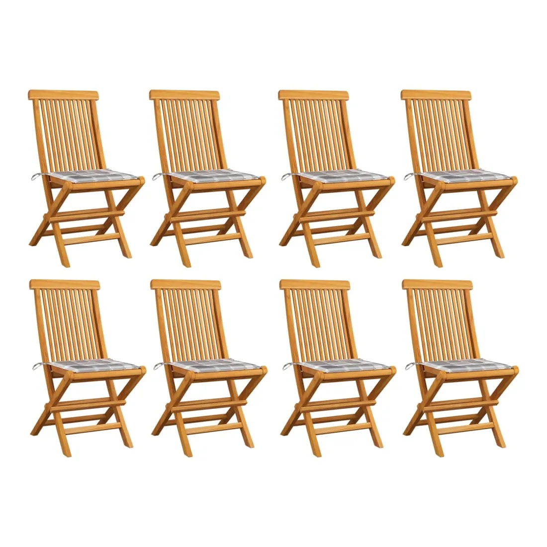 Chaises de jardin et coussins à carreaux gris lot de 8 Teck