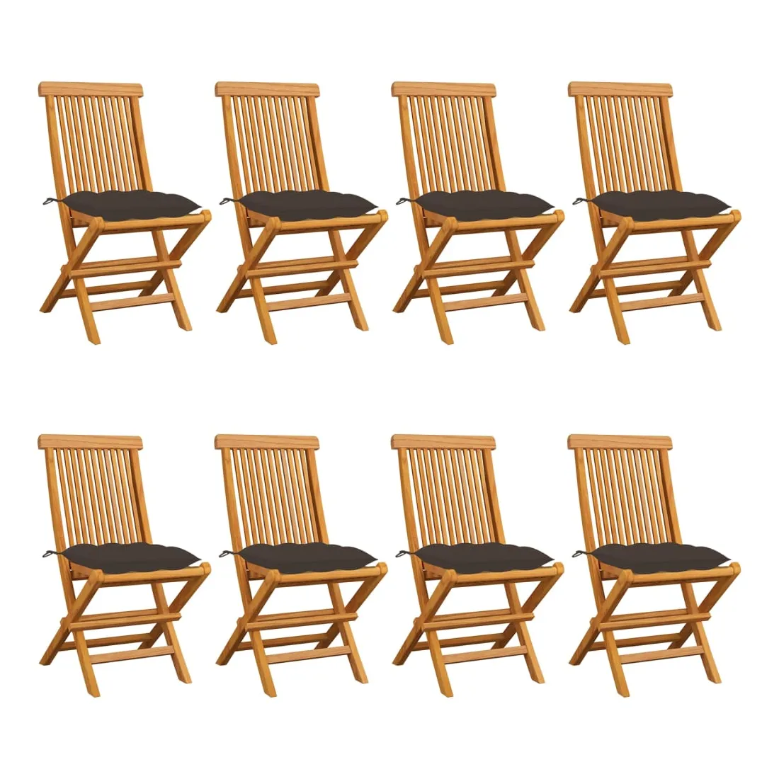 Chaises de jardin et coussins taupe lot de 8 Bois teck massif
