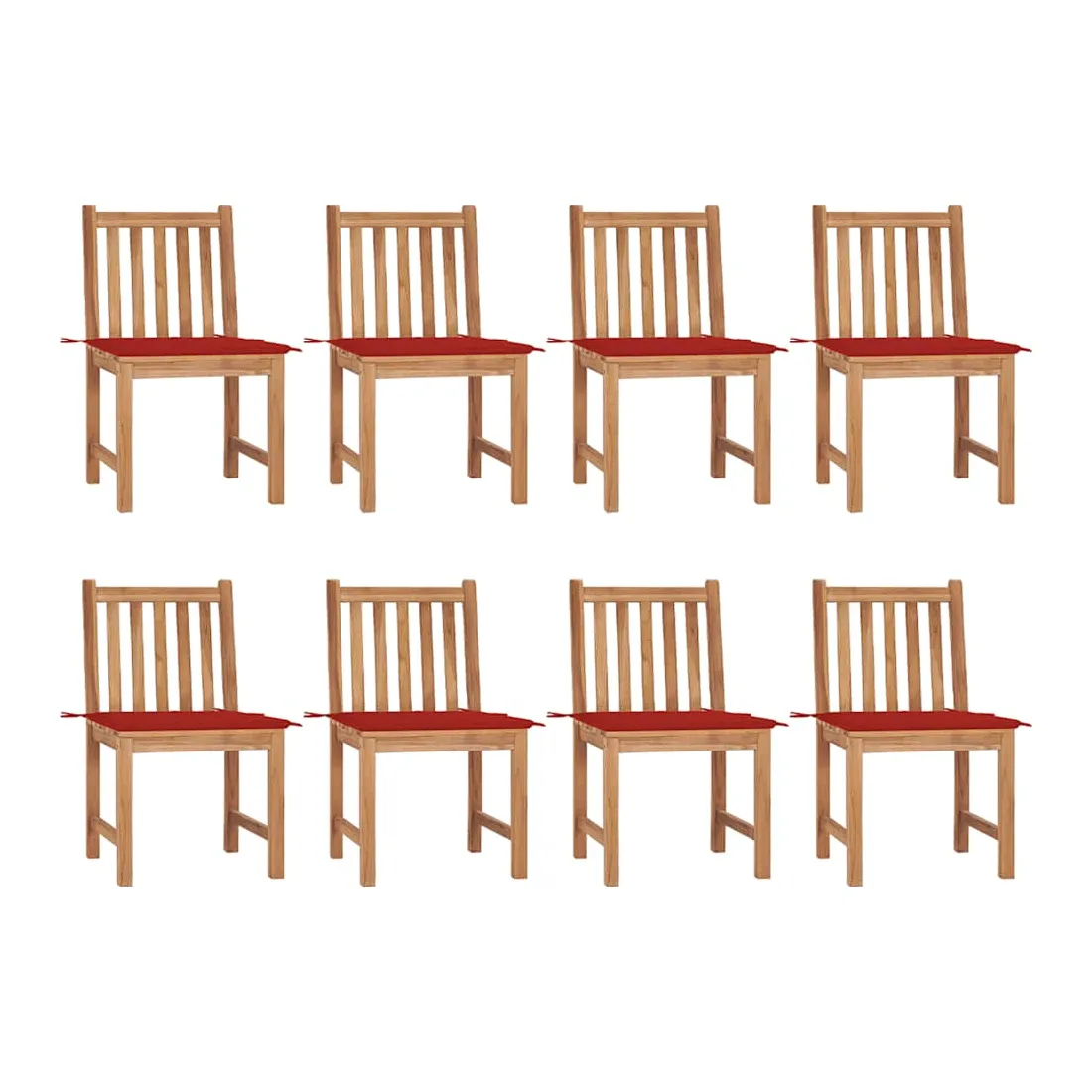 Chaises de jardin lot de 8 avec coussins Bois de teck massif