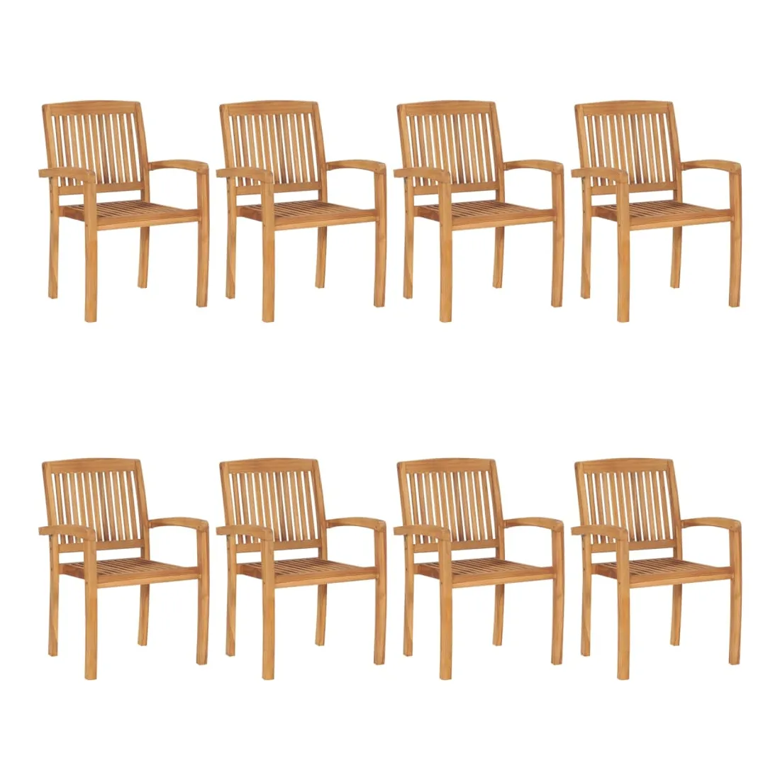Chaises de jardin empilables avec coussins lot de 8 Teck solide