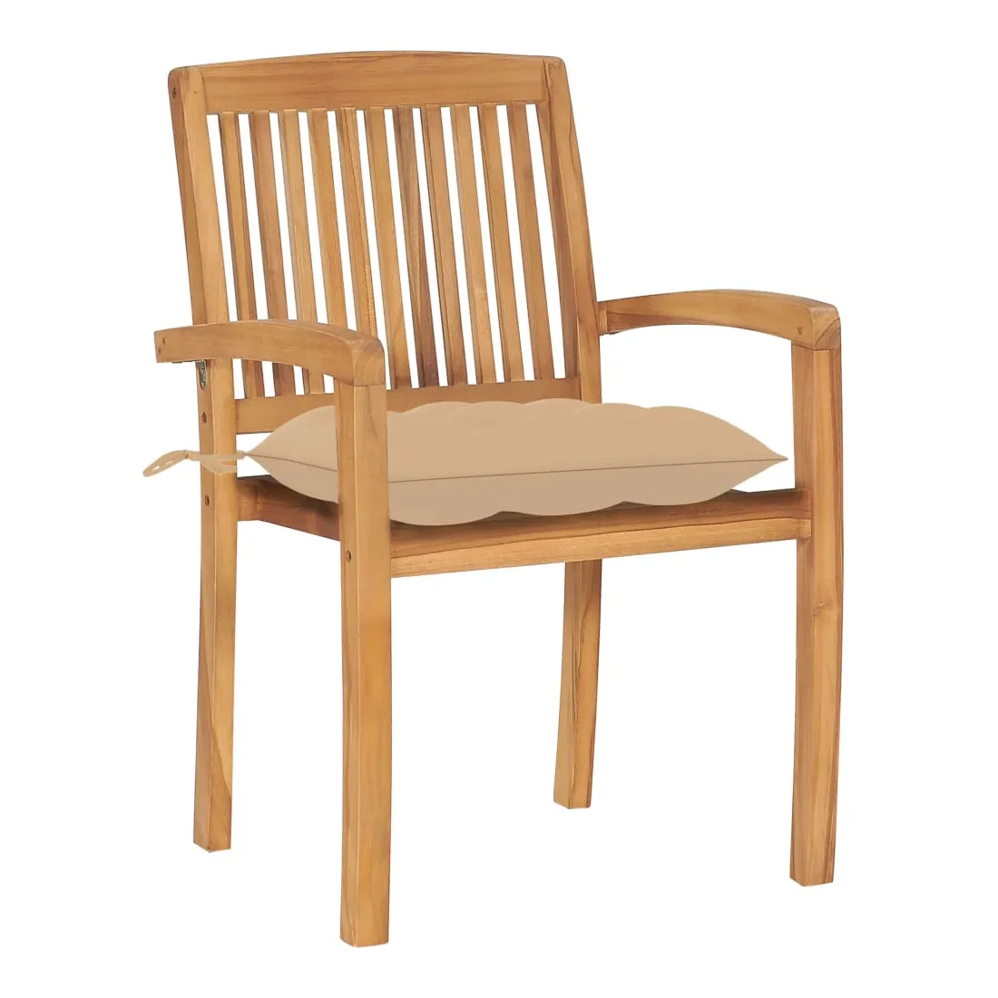 Chaises de jardin empilables avec coussins lot de 8 Teck solide