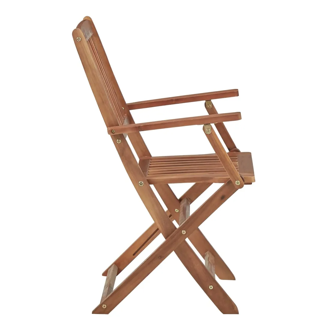 Cet ensemble de chaises pliables contemporaines ajoutera une touche de style naturel à votre jardin, terrasse ou patio. Cet ensemble de chaises d'extérieur sera un excellent choix pour les repas. Ces chaises de salle à manger sont construites en bois d'acacia solide, un bois tropical, qui est résistant aux intempéries et durable pour des années d'utilisation. La surface finie à l'huile est également facile à nettoyer avec un chiffon humide. Les chaises peuvent être pliées pour économiser de l'espace lorsqu'elles ne sont pas utilisées. Remarque : Afin de prolonger la durée de vie de vos meubles d'extérieur, nous vous recommandons de les nettoyer régulièrement et de ne pas les laisser à l'extérieur sans protection inutilement.Nettoyage : Utiliser une solution savonneuse douceStockage : Si possible, stockez dans un endroit frais et sec à l'intérieur. Si le produit est stocké à l'extérieur, protégez-le avec une housse imperméable. Essuyez et séchez l'excès d'eau ou de neige des surfaces planes après la pluie ou une chute de neige. Permettez une circulation d'air suffisante afin d'éviter les dommages liés à l'humidité.