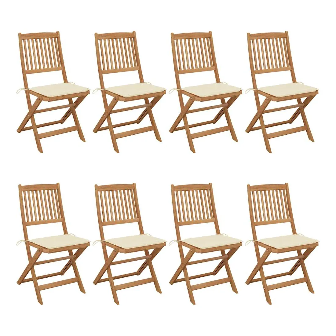 Chaises pliables de jardin lot de 8 avec coussins Bois d'acacia