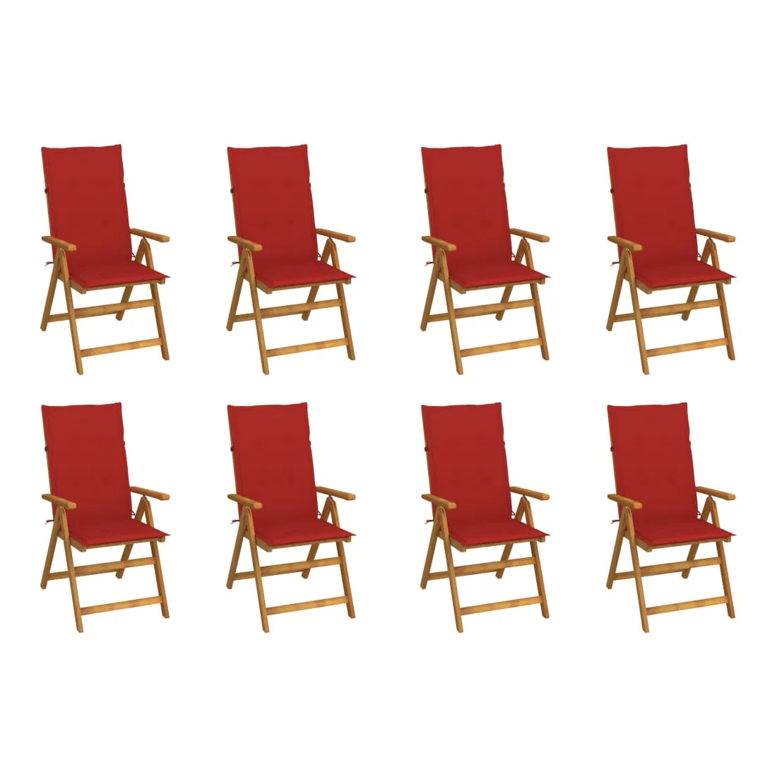 Cet ensemble de chaises de jardin en bois est conçu pour ajouter un look vintage à tout dîner dans votre jardin, sur votre terrasse ou patio. La chaise pliable est fabriquée en bois d’acacia massif, un bois dur tropical, ce qui la rend stable et durable. La surface à finition à l'huile est facile à nettoyer avec un chiffon humide. La chaise de salle à manger peut être réglée à 5 positions, vous offrant un confort d’assise optimal. Elle peut également être pliée pour économiser de l’espace lorsqu'elle n’est pas utilisée. Les coussins inclus offrent un confort supplémentaire. Remarque : afin de prolonger la durée de vie de vos meubles d'extérieur, nous vous recommandons de les nettoyer régulièrement et de ne pas les laisser à l'extérieur sans protection inutilement.Nettoyage : utiliser une solution savonneuse douceStockage : si possible, stockez dans un endroit frais et sec à l'intérieur. Si le produit est stocké à l'extérieur, protégez-le avec une housse imperméable. Essuyez et séchez l'excès d'eau ou de neige des surfaces planes après la pluie ou une chute de neige. Permettez une circulation d'air suffisante afin d'éviter les dommages liés à l'humidité.