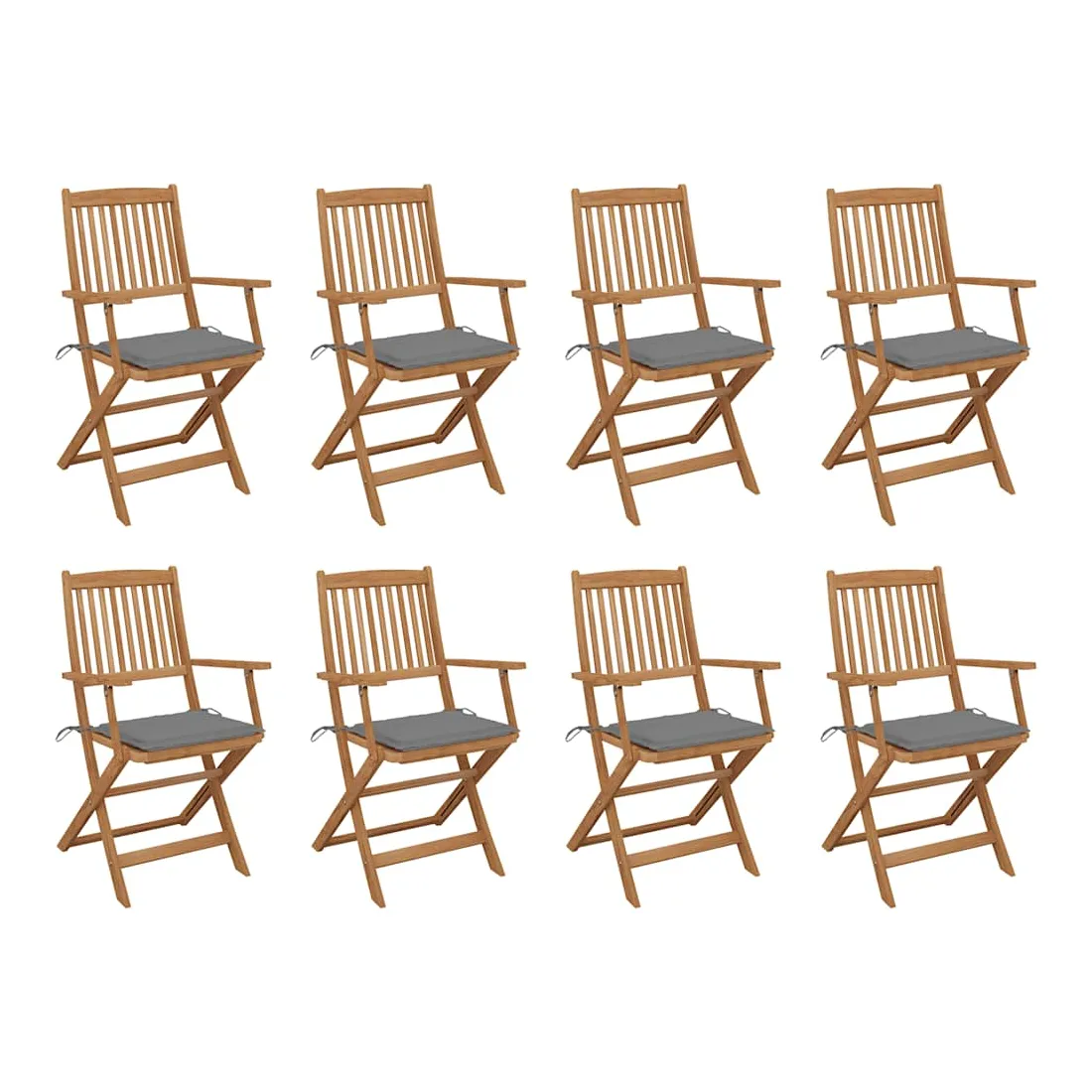 Cet ensemble de chaises de salle à manger contemporain en bois ajoutera une touche de style naturel à votre jardin, terrasse ou patio. Cet ensemble de chaises pliables sera un excellent choix pour les repas. Ces chaises de salle à manger sont construites en bois d'acacia de qualité supérieure, un bois tropical, qui est résistant aux intempéries et durable pour des années d'utilisation. La surface à finition à l'huile est également facile à nettoyer avec un chiffon humide. Les chaises peuvent être pliées pour économiser de l'espace lorsqu'elles ne sont pas utilisées. De plus, les coussins fournis offrent un confort supplémentaire. Chaque coussin dispose de 2 ensembles de cordes pour le fixer fermement sur la chaise. Remarque : afin de prolonger la durée de vie de vos meubles d'extérieur, nous vous recommandons de les nettoyer régulièrement et de ne pas les laisser à l'extérieur sans protection inutilement.Nettoyage : utiliser une solution savonneuse douceStockage : si possible, stockez dans un endroit frais et sec à l'intérieur. Si le produit est stocké à l'extérieur, protégez-le avec une housse imperméable. Essuyez et séchez l'excès d'eau ou de neige des surfaces planes après la pluie ou une chute de neige. Permettez une circulation d'air suffisante afin d'éviter les dommages liés à l'humidité.