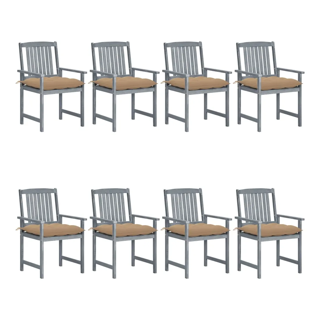 Chaises de jardin et coussins lot de 8 Bois acacia solide Gris