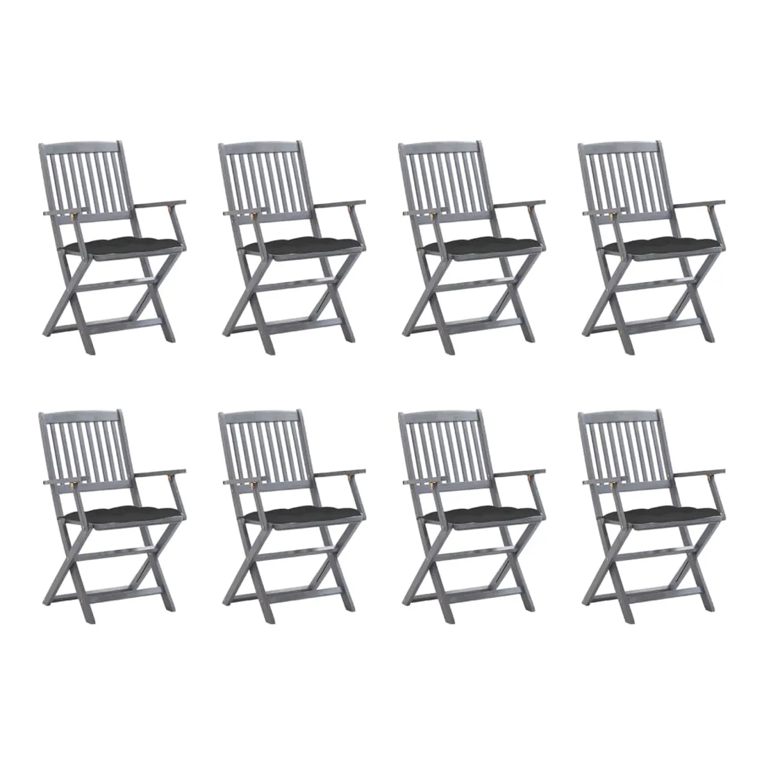 Chaises pliables d'extérieur lot de 8 et coussins Bois d'acacia
