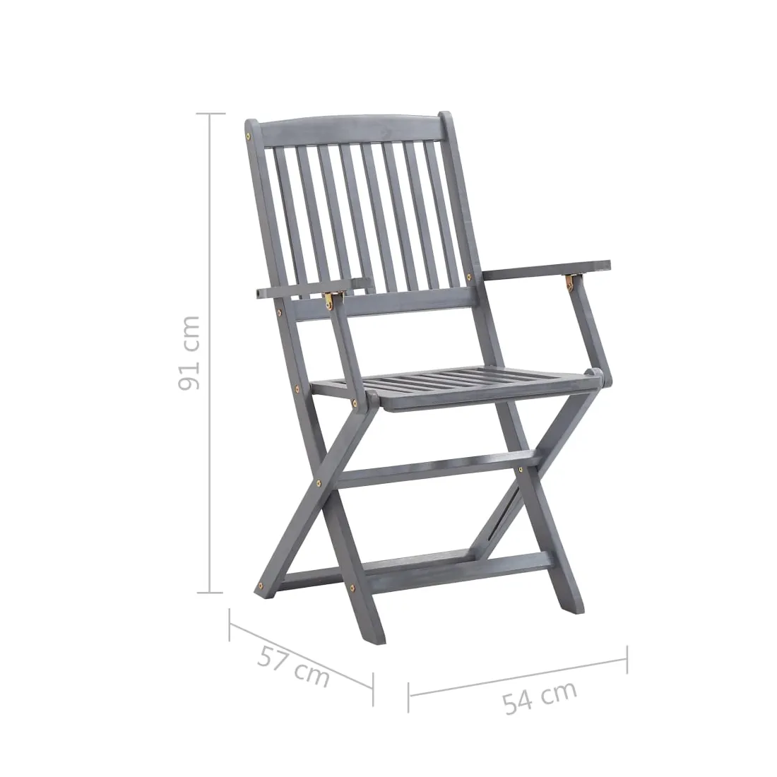 Cet ensemble de chaises de salle à manger en bois contemporain avec coussins ajoute une touche de style naturel à votre jardin, terrasse ou patio. Cet ensemble de chaises pliables est un excellent choix pour les repas. Ces chaises de salle à manger sont faites de bois d’acacia massif, un bois dur tropical, les rendant résistantes aux intempéries et durables pour des années d’utilisation. Le bois d’acacia massif a la force de soutenir le poids et de résister à l’usure du temps. La surface grise délavée est facile à nettoyer avec un chiffon humide. Les chaises peuvent être repliées pour économiser de l’espace lorsqu'elles ne sont pas utilisées. De plus, les coussins inclus offrent un confort supplémentaire lors des moments de détente ou des repas. Chaque coussin comporte deux ensembles de cordes pour le fixer fermement à la chaise. Remarque : Afin de prolonger la durée de vie de vos meubles d'extérieur, nous vous recommandons de les nettoyer régulièrement et de ne pas les laisser à l'extérieur sans protection inutilement.Nettoyage : Utiliser une solution savonneuse douceStockage : Si possible, stockez dans un endroit frais et sec à l'intérieur. Si le produit est stocké à l'extérieur, protégez-le avec une housse imperméable. Essuyez et séchez l'excès d'eau ou de neige des surfaces planes après la pluie ou une chute de neige. Permettez une circulation d'air suffisante afin d'éviter les dommages liés à l'humidité.