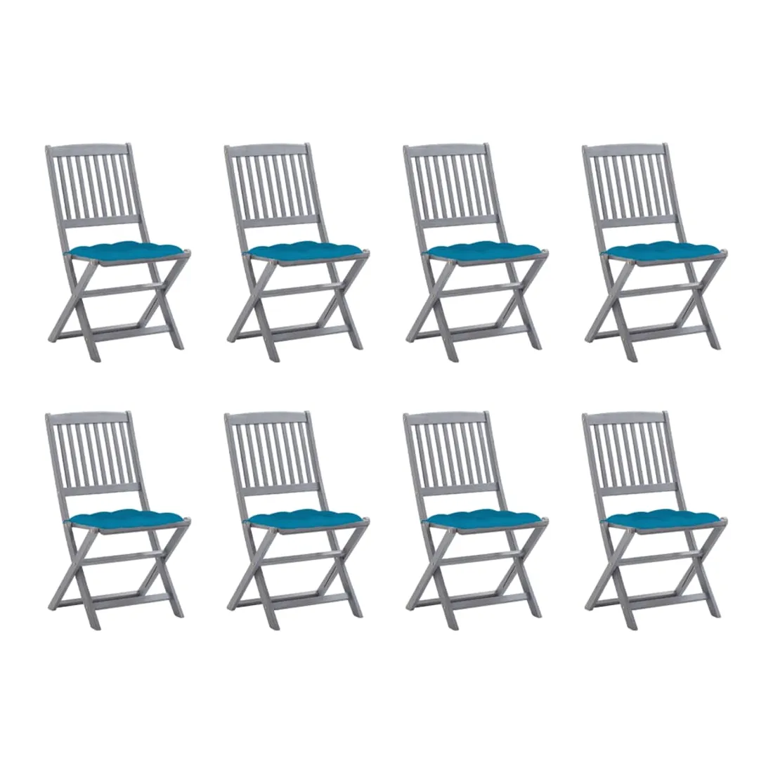 Cet ensemble de chaises de salle à manger en bois contemporain avec coussins ajoute une touche de style naturel à votre jardin, terrasse ou patio. Cet ensemble de chaises pliables est un excellent choix pour les repas. Ces chaises de salle à manger sont faites de bois d’acacia massif, un bois dur tropical, les rendant résistantes aux intempéries et durables pour des années d’utilisation. Le bois d’acacia massif a la force de soutenir le poids et de résister à l’usure du temps. La surface grise délavée est facile à nettoyer avec un chiffon humide. Les chaises peuvent être repliées pour économiser de l’espace lorsqu'elles ne sont pas utilisées. De plus, les coussins inclus offrent un confort supplémentaire lors des moments de détente ou des repas. Chaque coussin comporte deux ensembles de cordes pour le fixer fermement à la chaise. Remarque : Afin de prolonger la durée de vie de vos meubles d'extérieur, nous vous recommandons de les nettoyer régulièrement et de ne pas les laisser à l'extérieur sans protection inutilement.Nettoyage : Utiliser une solution savonneuse douceStockage : Si possible, stockez dans un endroit frais et sec à l'intérieur. Si le produit est stocké à l'extérieur, protégez-le avec une housse imperméable. Essuyez et séchez l'excès d'eau ou de neige des surfaces planes après la pluie ou une chute de neige. Permettez une circulation d'air suffisante afin d'éviter les dommages liés à l'humidité.