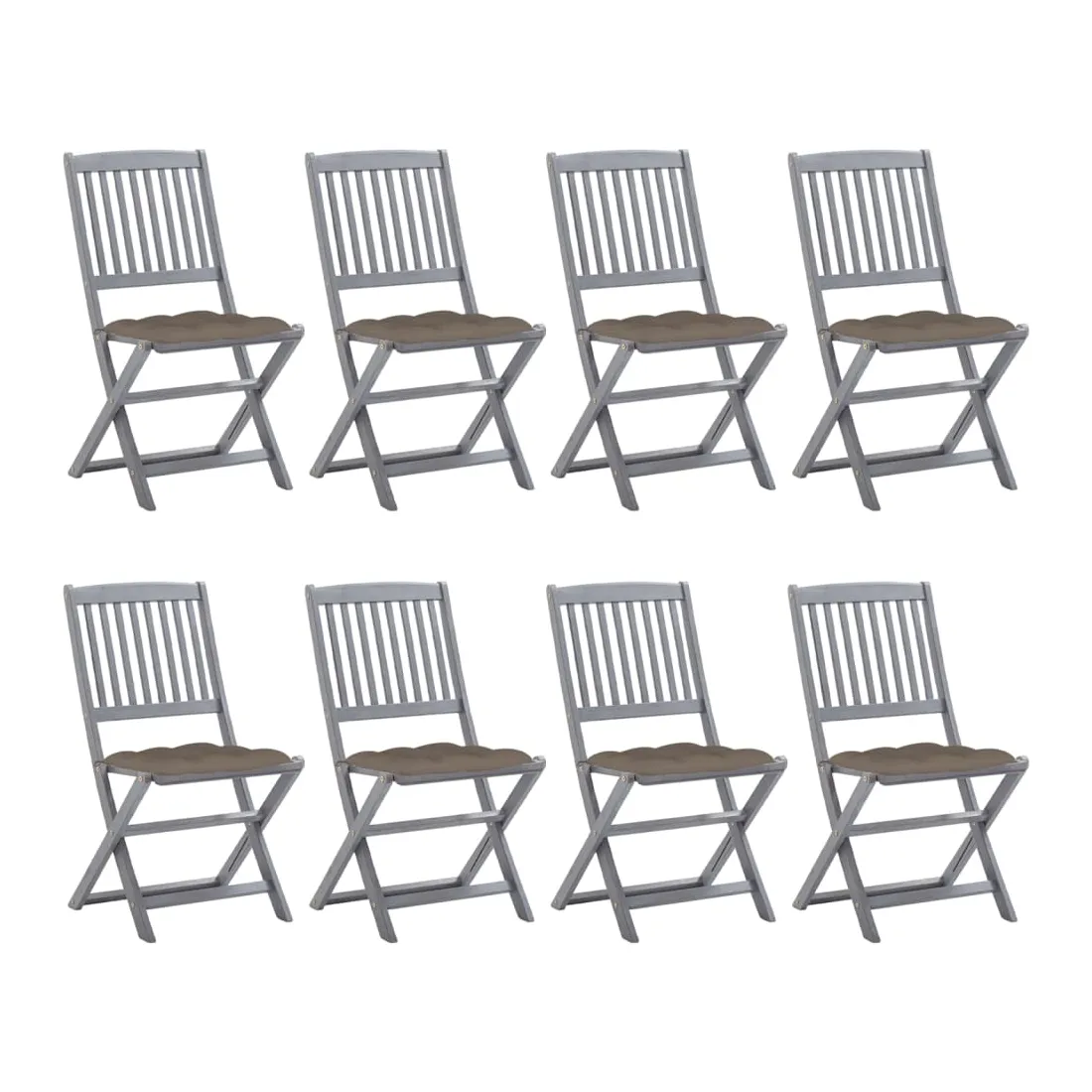 Cet ensemble de chaises de salle à manger en bois contemporain avec coussins ajoute une touche de style naturel à votre jardin, terrasse ou patio. Cet ensemble de chaises pliables est un excellent choix pour les repas. Ces chaises de salle à manger sont faites de bois d’acacia massif, un bois dur tropical, les rendant résistantes aux intempéries et durables pour des années d’utilisation. Le bois d’acacia massif a la force de soutenir le poids et de résister à l’usure du temps. La surface grise délavée est facile à nettoyer avec un chiffon humide. Les chaises peuvent être repliées pour économiser de l’espace lorsqu'elles ne sont pas utilisées. De plus, les coussins inclus offrent un confort supplémentaire lors des moments de détente ou des repas. Chaque coussin comporte deux ensembles de cordes pour le fixer fermement à la chaise. Remarque : Afin de prolonger la durée de vie de vos meubles d'extérieur, nous vous recommandons de les nettoyer régulièrement et de ne pas les laisser à l'extérieur sans protection inutilement.Nettoyage : Utiliser une solution savonneuse douceStockage : Si possible, stockez dans un endroit frais et sec à l'intérieur. Si le produit est stocké à l'extérieur, protégez-le avec une housse imperméable. Essuyez et séchez l'excès d'eau ou de neige des surfaces planes après la pluie ou une chute de neige. Permettez une circulation d'air suffisante afin d'éviter les dommages liés à l'humidité.
