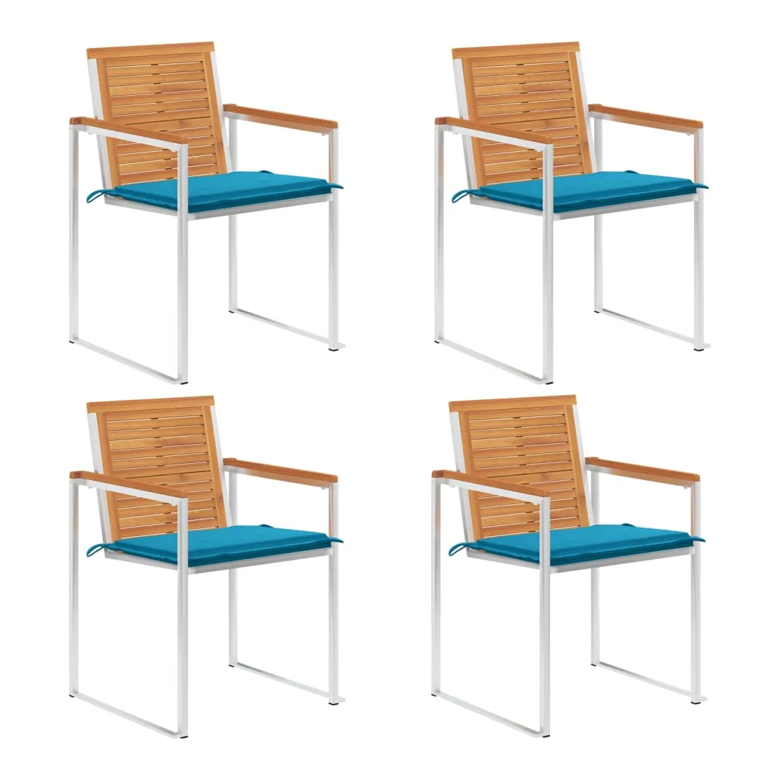 Ces chaises de jardin en bois sont conçues pour devenir le point de mire de votre jardin ou de votre patio. Les chaises de salle à manger sont fabriquées en bois d'acacia massif et en acier inoxydable de haute qualité, ce qui les rend très durables, résistantes à la rouille, robustes et faciles à nettoyer avec un chiffon humide. Le coussin inclus est plus qu'un supplément pratique, il a également une fonction décorative. Asseyez-vous pour un délicieux dîner en plein air ou détendez-vous et profitez du beau temps avec cet ensemble classique de chaises de jardin. Remarque : afin de prolonger la durée de vie de vos meubles d'extérieur, nous vous recommandons de les nettoyer régulièrement et de ne pas les laisser à l'extérieur sans protection inutilement.Nettoyage : Utiliser une solution savonneuse douce.Stockage : si possible, stockez dans un endroit frais et sec à l'intérieur. Si le produit est stocké à l'extérieur, protégez-le avec une housse imperméable. Essuyez et séchez l'excès d'eau ou de neige des surfaces planes après la pluie ou une chute de neige. Permettez une circulation d'air suffisante afin d'éviter les dommages liés à l'humidité.