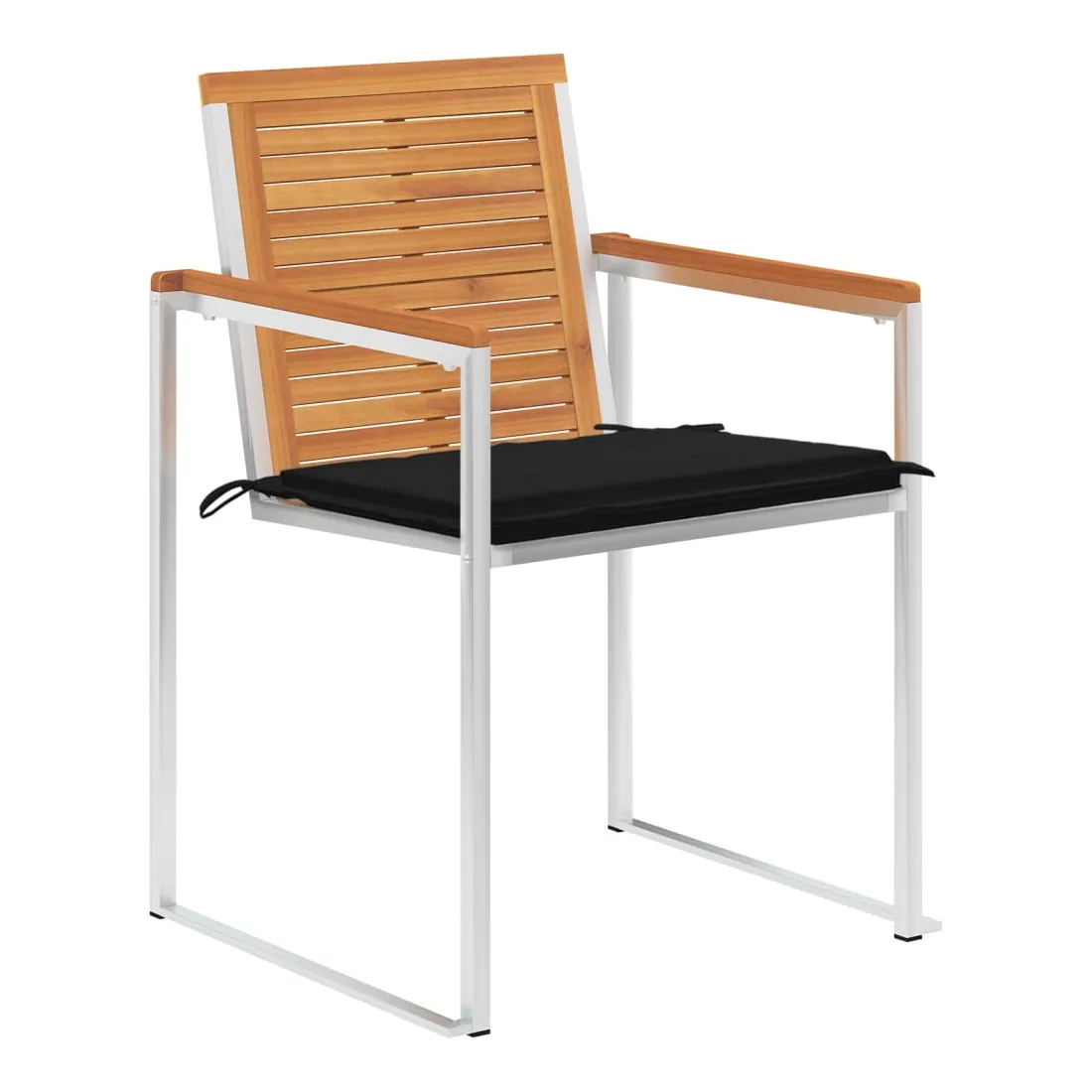Ces chaises de jardin en bois sont conçues pour devenir le point de mire de votre jardin ou de votre patio. Les chaises de salle à manger sont fabriquées en bois d'acacia massif et en acier inoxydable de haute qualité, ce qui les rend très durables, résistantes à la rouille, robustes et faciles à nettoyer avec un chiffon humide. Le coussin inclus est plus qu'un supplément pratique, il a également une fonction décorative. Asseyez-vous pour un délicieux dîner en plein air ou détendez-vous et profitez du beau temps avec cet ensemble classique de chaises de jardin. Remarque : afin de prolonger la durée de vie de vos meubles d'extérieur, nous vous recommandons de les nettoyer régulièrement et de ne pas les laisser à l'extérieur sans protection inutilement.Nettoyage : Utiliser une solution savonneuse douce.Stockage : si possible, stockez dans un endroit frais et sec à l'intérieur. Si le produit est stocké à l'extérieur, protégez-le avec une housse imperméable. Essuyez et séchez l'excès d'eau ou de neige des surfaces planes après la pluie ou une chute de neige. Permettez une circulation d'air suffisante afin d'éviter les dommages liés à l'humidité.