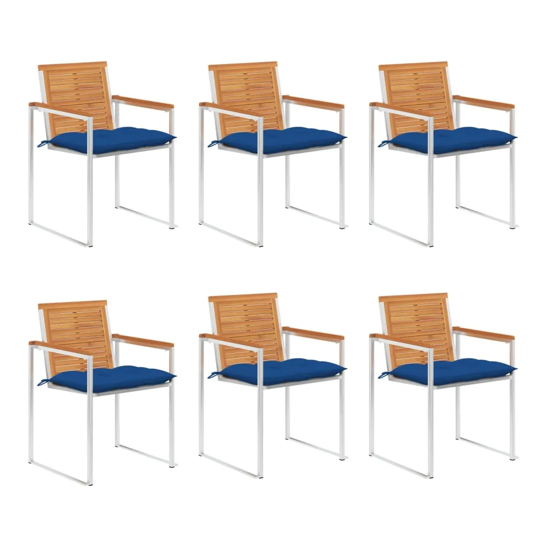 Ces chaises de jardin en bois sont conçues pour devenir le point de mire de votre jardin ou de votre patio. Les chaises de salle à manger sont fabriquées en bois d'acacia massif et en acier inoxydable de haute qualité, ce qui les rend très durables, résistantes à la rouille, robustes et faciles à nettoyer avec un chiffon humide. Le coussin inclus est plus qu'un supplément pratique, il a également une fonction décorative. Asseyez-vous pour un délicieux dîner en plein air ou détendez-vous et profitez du beau temps avec cet ensemble classique de chaises de jardin. Remarque : afin de prolonger la durée de vie de vos meubles d'extérieur, nous vous recommandons de les nettoyer régulièrement et de ne pas les laisser à l'extérieur sans protection inutilement.Nettoyage : Utiliser une solution savonneuse douce.Stockage : si possible, stockez dans un endroit frais et sec à l'intérieur. Si le produit est stocké à l'extérieur, protégez-le avec une housse imperméable. Essuyez et séchez l'excès d'eau ou de neige des surfaces planes après la pluie ou une chute de neige. Permettez une circulation d'air suffisante afin d'éviter les dommages liés à l'humidité.