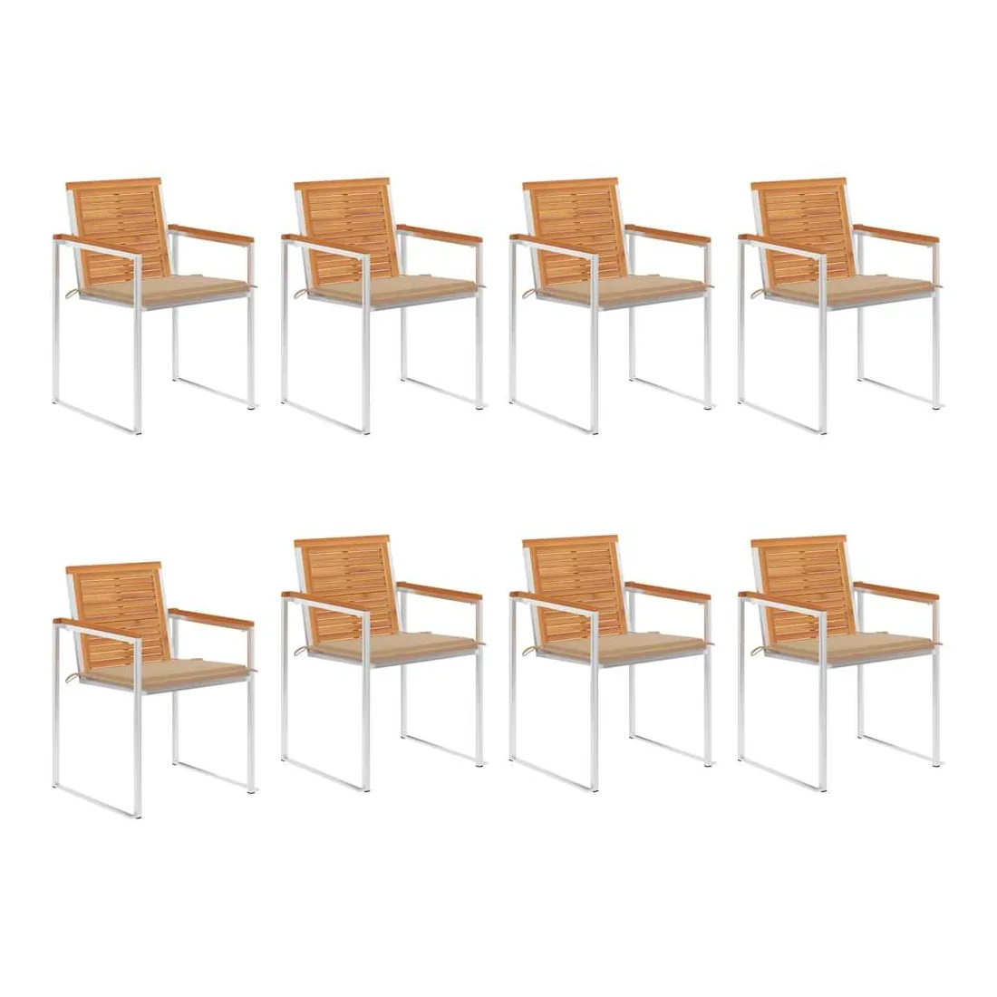 Chaises de jardin lot de 8 avec coussins Bois d'acacia solide