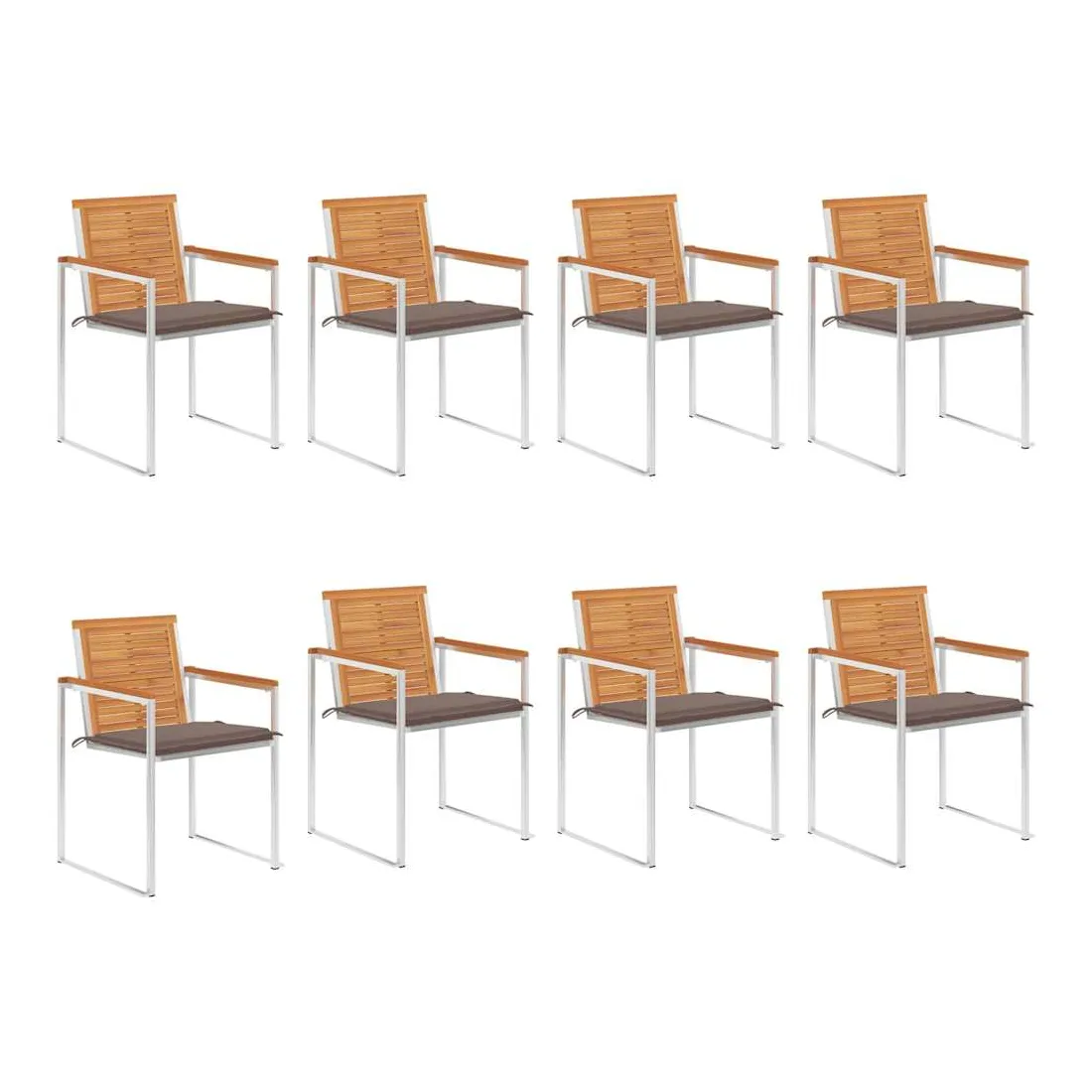 Chaises de jardin lot de 8 avec coussins Bois d'acacia solide