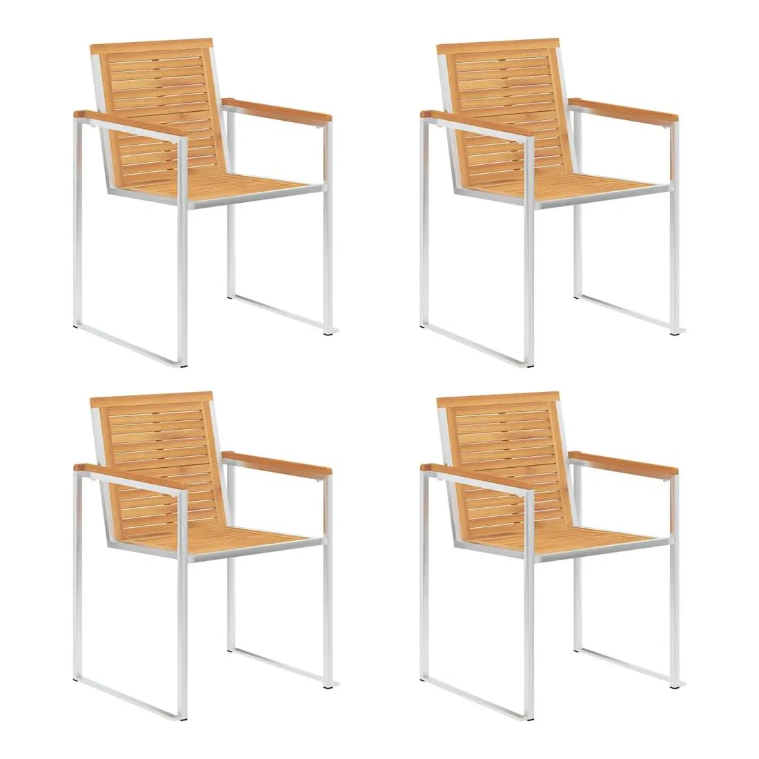 Ces chaises de jardin en bois sont conçues pour devenir le point de mire de votre jardin ou de votre patio. Construite à partir de bois dur de teck extrêmement durable, cette pièce de mobilier en boit de teck a été chevronnée, séchée au four puis poncée finement pour donner un aspect très lisse. Le bois de teck est connu pour sa solidité et sa résistance aux intempéries exceptionnelles, ce qui le rend bien plus adapté aux meubles de jardin que tout autre type de bois. Le bois de teck est le choix parfait si vous souhaitez acheter un meuble de jardin durable. Le cadre en acier inoxydable de haute qualité les rend également très durables, résistantes à la rouille et robustes. Le coussin inclus est plus qu'un supplément pratique ; il a une fonction décorative aussi. Asseyez-vous pour un délicieux dîner en plein air ou détendez-vous simplement et profitez du beau temps sur cet ensemble de chaises de jardin classique. Remarque : afin de prolonger la durée de vie de vos meubles d'extérieur, nous vous recommandons de les nettoyer régulièrement et de ne pas les laisser à l'extérieur sans protection inutilement.Nettoyage : Utiliser une solution savonneuse douce.Stockage : si possible, stockez dans un endroit frais et sec à l'intérieur. Si le produit est stocké à l'extérieur, protégez-le avec une housse imperméable. Essuyez et séchez l'excès d'eau ou de neige des surfaces planes après la pluie ou une chute de neige. Permettez une circulation d'air suffisante afin d'éviter les dommages liés à l'humidité.