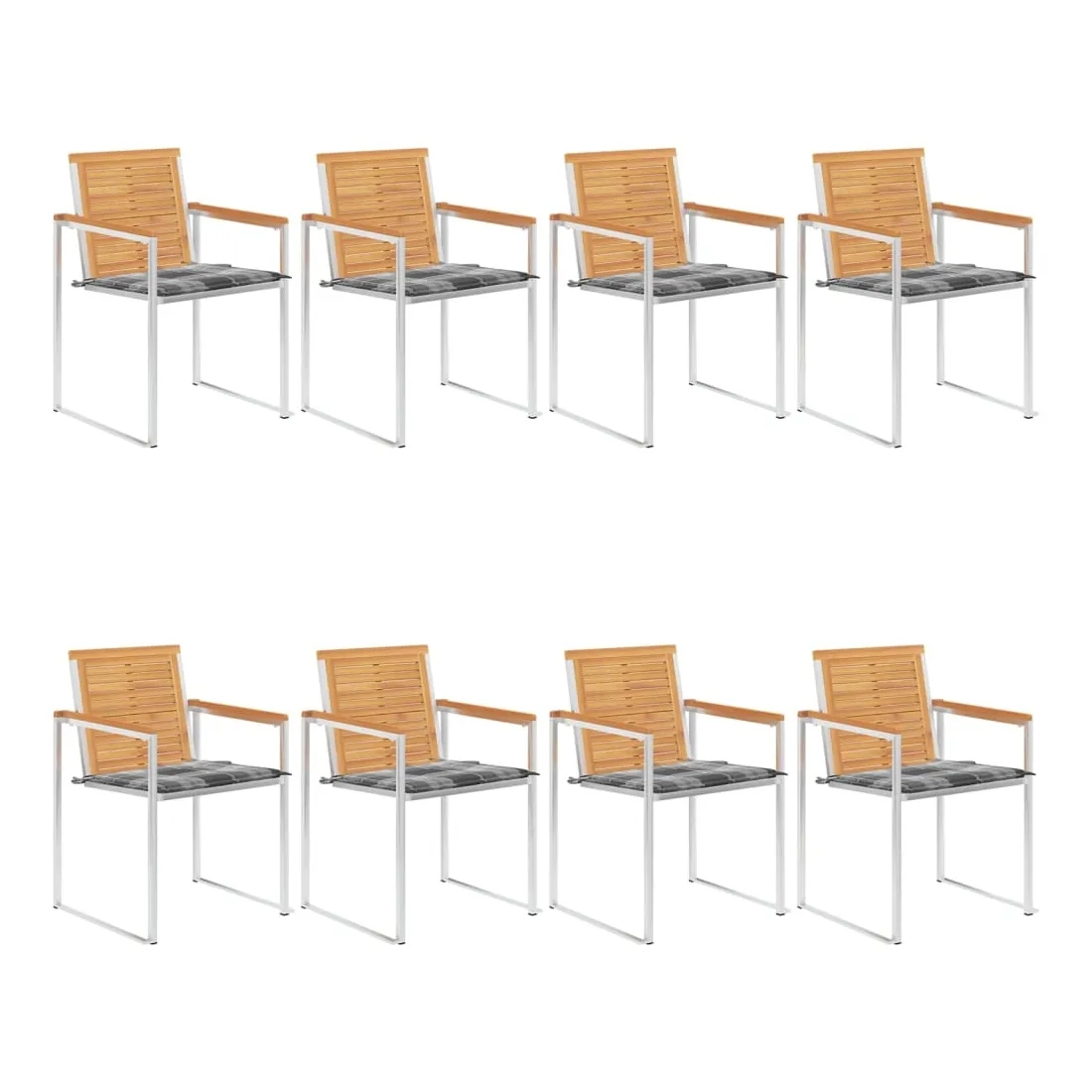 Chaises de jardin lot de 8 avec coussins Bois de teck massif