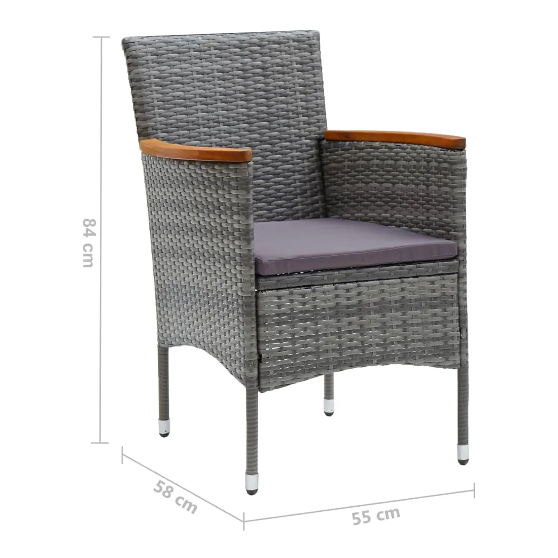 Cet ensemble de chaises de jardin est destiné à se démarquer et ajoute une touche de style contemporain à votre paysage extérieur, comme les jardins, le balcon, le patio, etc. Cadre en acier robuste enveloppé de résine tressée résistante aux intempéries, cet ensemble de chaises de jardin est résistant à la rouille et à la moisissure et offre des années de détente de qualité. Cet ensemble de chaises d'extérieur, conçu avec un dossier et un accoudoir incurvés, présente une forme plus ergonomique pour un confort maximal. Les accoudoirs sont joliment décorés de bois d'acacia massif avec une finition à l'huile naturelle, ce qui apporte une sensation de charme rustique. De plus, les coussins bien rembourrés offrent un confort ultime pendant votre temps assis.