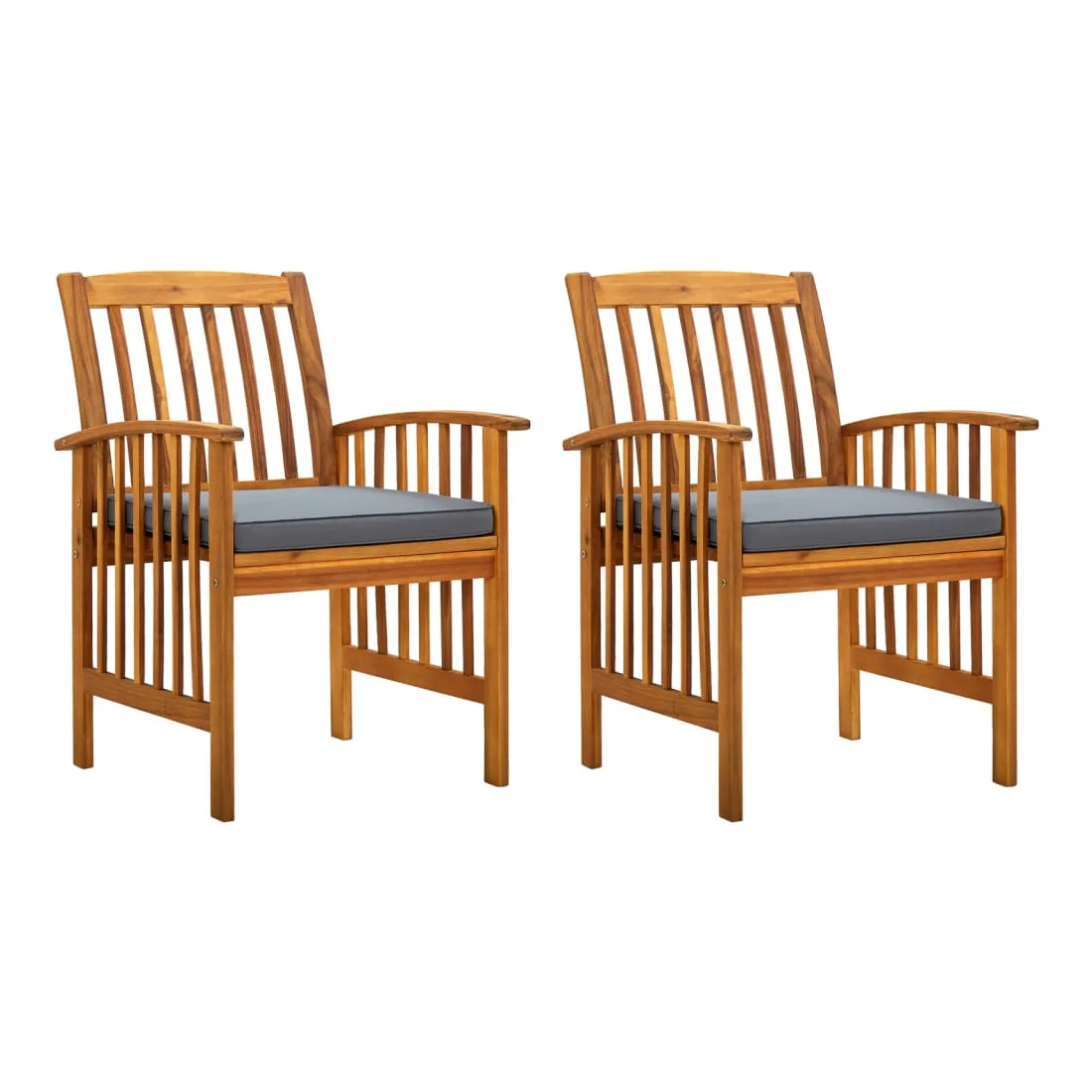 Chaises à manger de jardin lot de 2 et coussins acacia massif