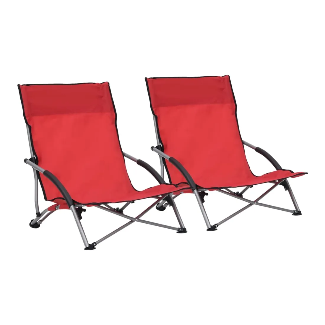Chaises de plage pliables lot de 2 Rouge Tissu