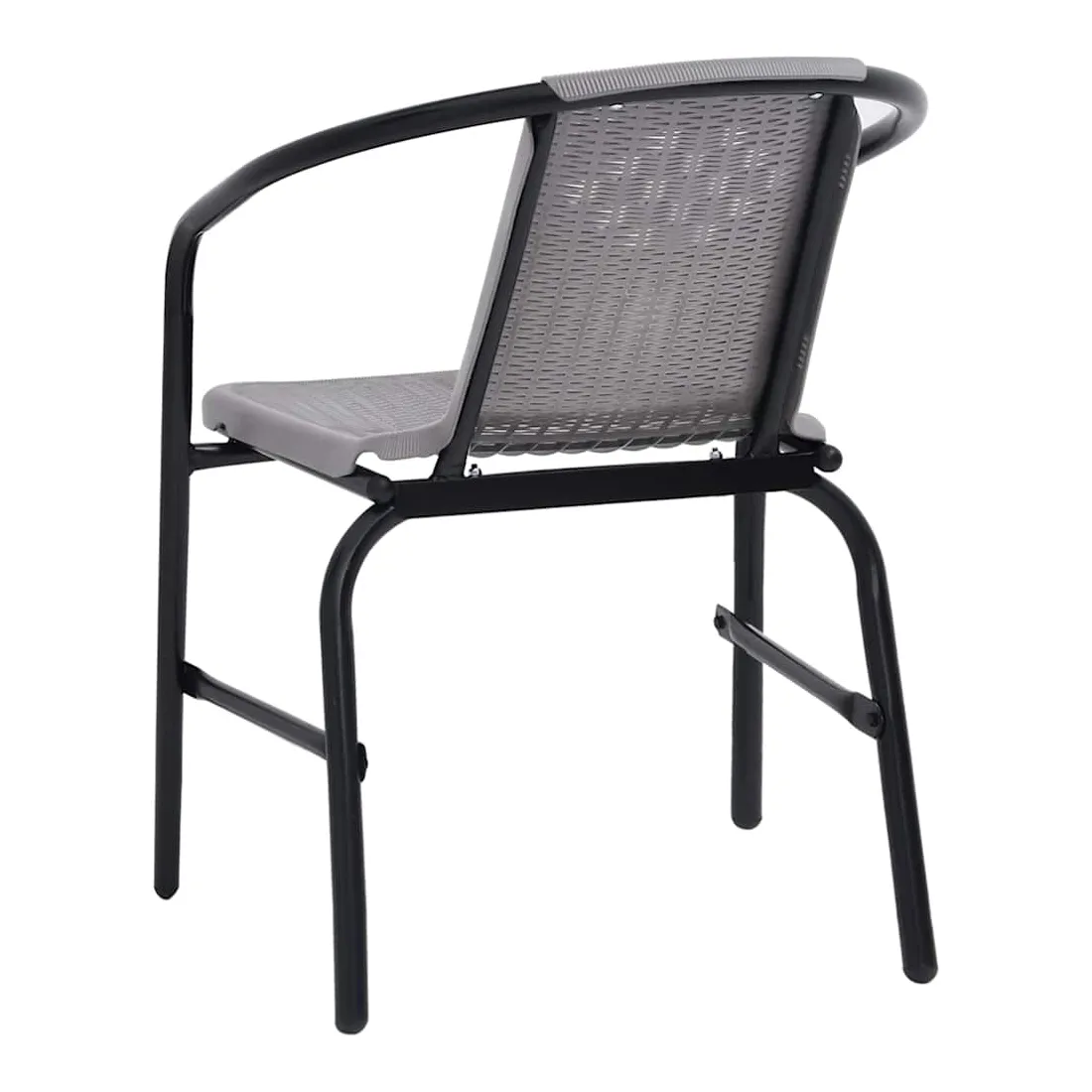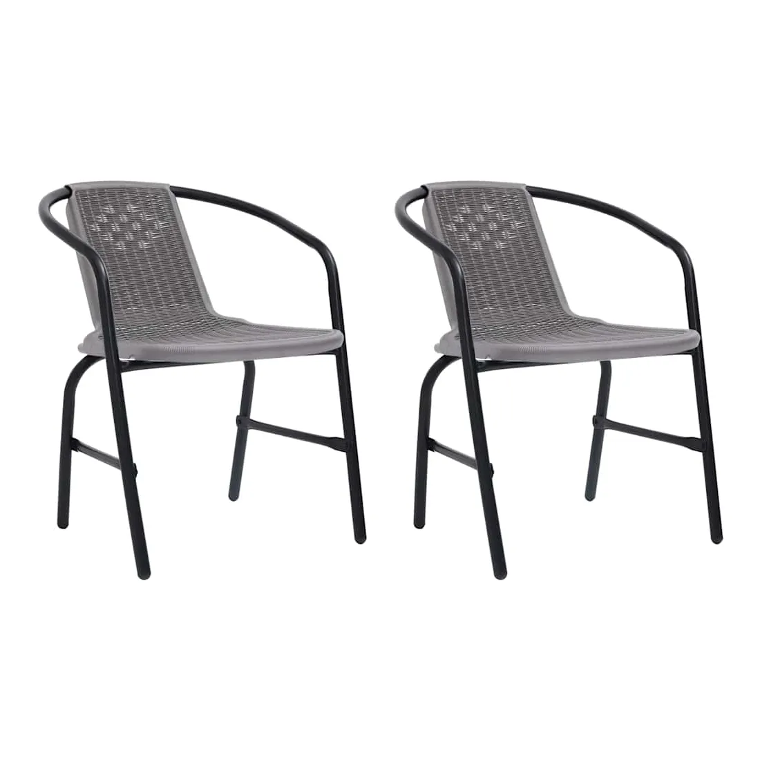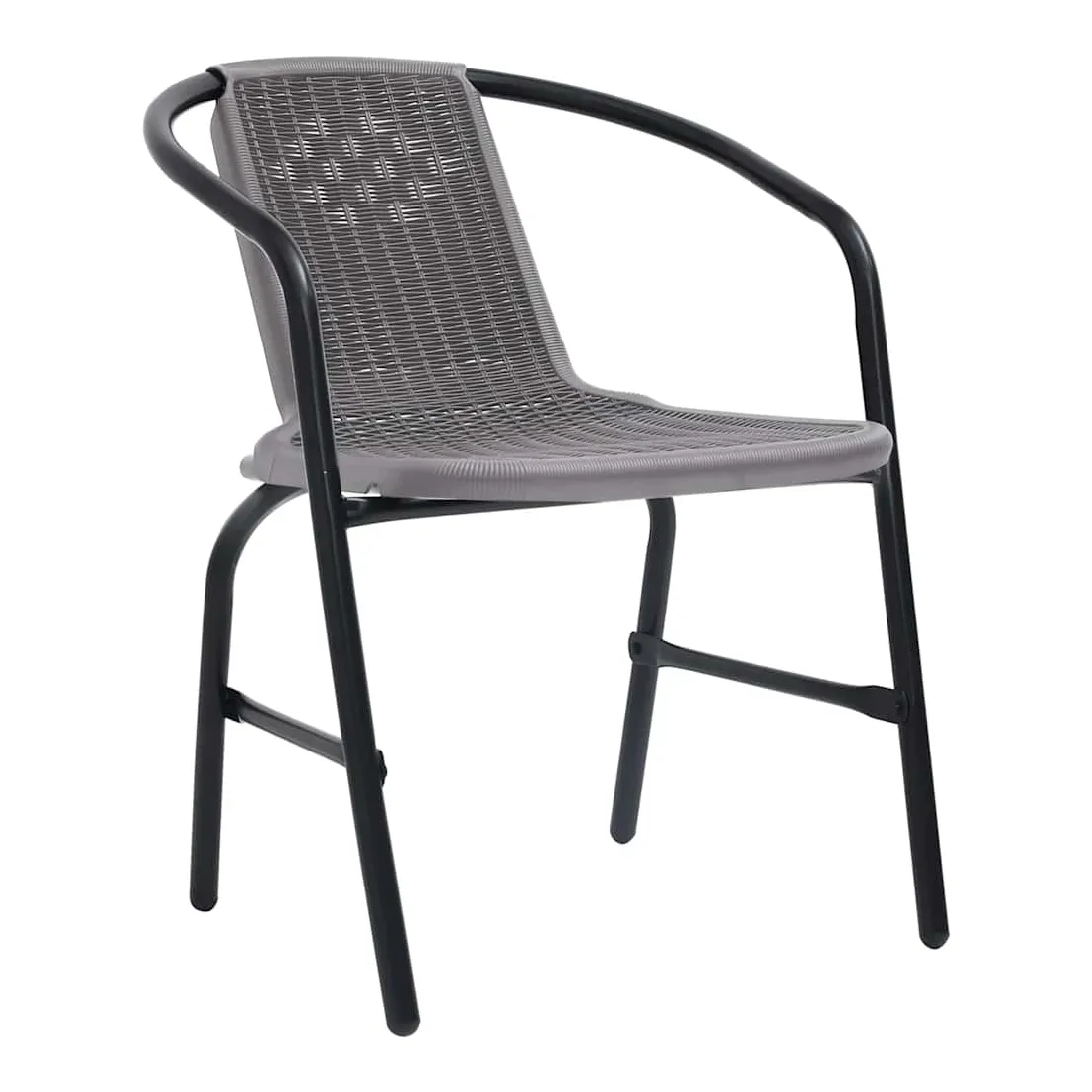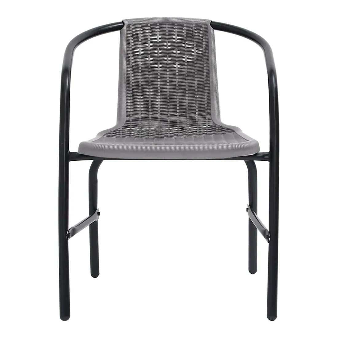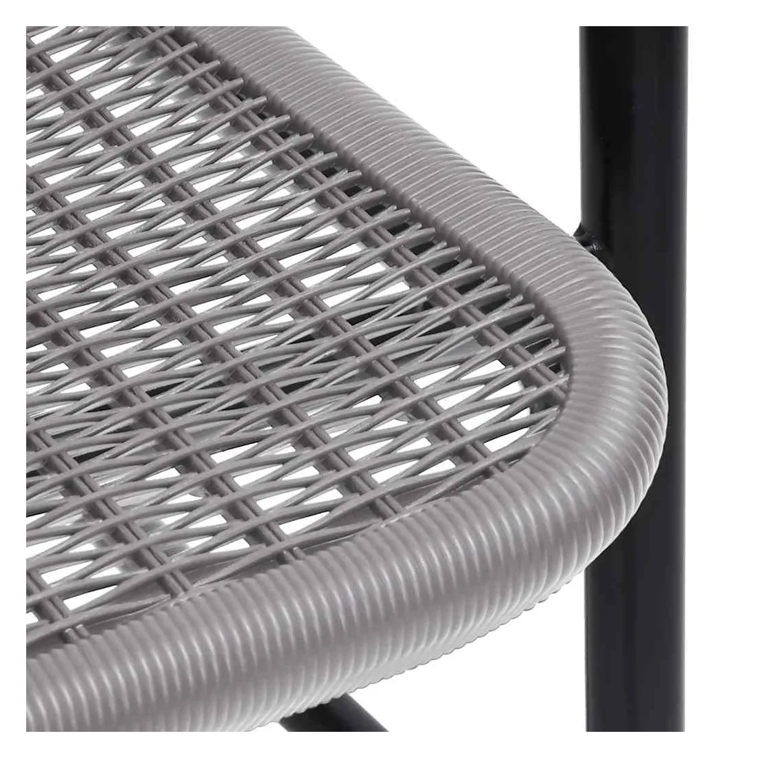 Cet ensemble de chaises de jardin à l'aspect de rotin, au design élégant et contemporain, est un supplément accrocheur à votre espace de vie extérieur. Grâce au cadre en acier, les chaises d’extérieur sont stables et robustes. Les sièges en rotin en plastique ajoutent au confort des sièges. De plus, les fauteuils sont empilables pour gagner de la place lorsqu'ils ne sont pas utilisés. Remarque : afin de prolonger la durée de vie de vos meubles d'extérieur, nous vous recommandons de les nettoyer régulièrement et de ne pas les laisser à l'extérieur sans protection inutilement.Nettoyage : utiliser une solution savonneuse douceStockage : si possible, stockez dans un endroit frais et sec à l'intérieur. Si le produit est stocké à l'extérieur, protégez-le avec une housse imperméable. Essuyez et séchez l'excès d'eau ou de neige des surfaces planes après la pluie ou une chute de neige. Permettez une circulation d'air suffisante afin d'éviter les dommages liés à l'humidité.