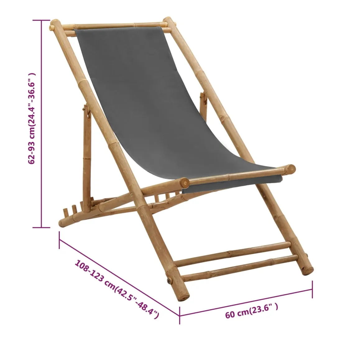 Cette chaise longue de terrasse en bambou et toile est un choix idéal pour votre jardin ou pour vous détendre à la plage ou au camping. Fabriqué en bambou, ce siège se caractérise par une excellente résistance aux intempéries et une excellente durabilité. La chaise peut être réglée en 4 positions afin que vous puissiez trouver la position assise ou couchée la plus confortable. La toile rend la chaise de plage confortable pour vous y asseoir. Doté d’un design pliable, la chaise peut être repliée lorsqu'elle n’est pas utilisée pour économiser de l’espace. Cette chaise de terrasse offre un excellent soutien et est le compagnon idéal pour les après-midis ensoleillés.