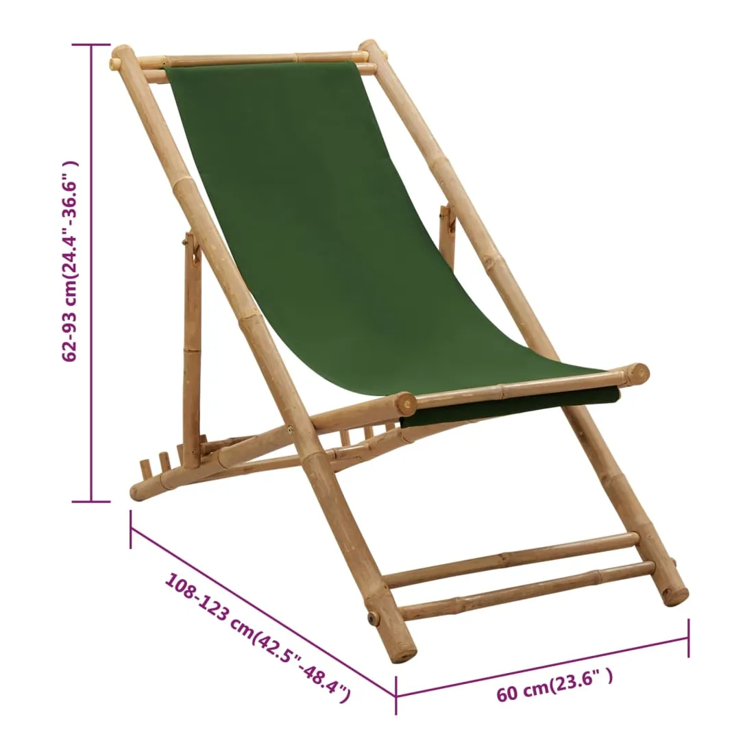 Cette chaise longue de terrasse en bambou et toile est un choix idéal pour votre jardin ou pour vous détendre à la plage ou au camping. Fabriqué en bambou, ce siège se caractérise par une excellente résistance aux intempéries et une excellente durabilité. La chaise peut être réglée en 4 positions afin que vous puissiez trouver la position assise ou couchée la plus confortable. La toile rend la chaise de plage confortable pour vous y asseoir. Doté d’un design pliable, la chaise peut être repliée lorsqu'elle n’est pas utilisée pour économiser de l’espace. Cette chaise de terrasse offre un excellent soutien et est le compagnon idéal pour les après-midis ensoleillés.