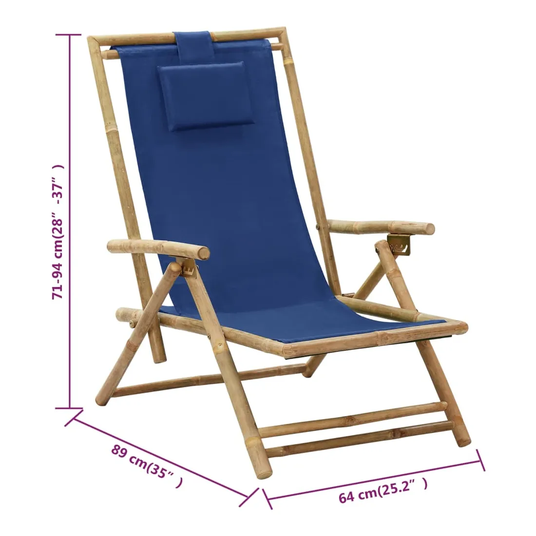 Chaise de relaxation inclinable bleu marine bambou et tissu