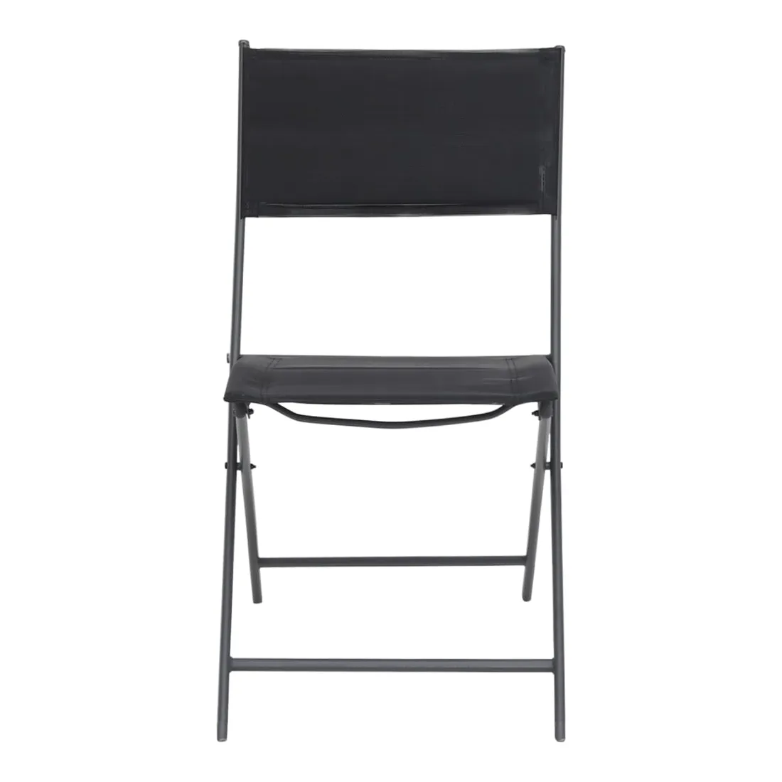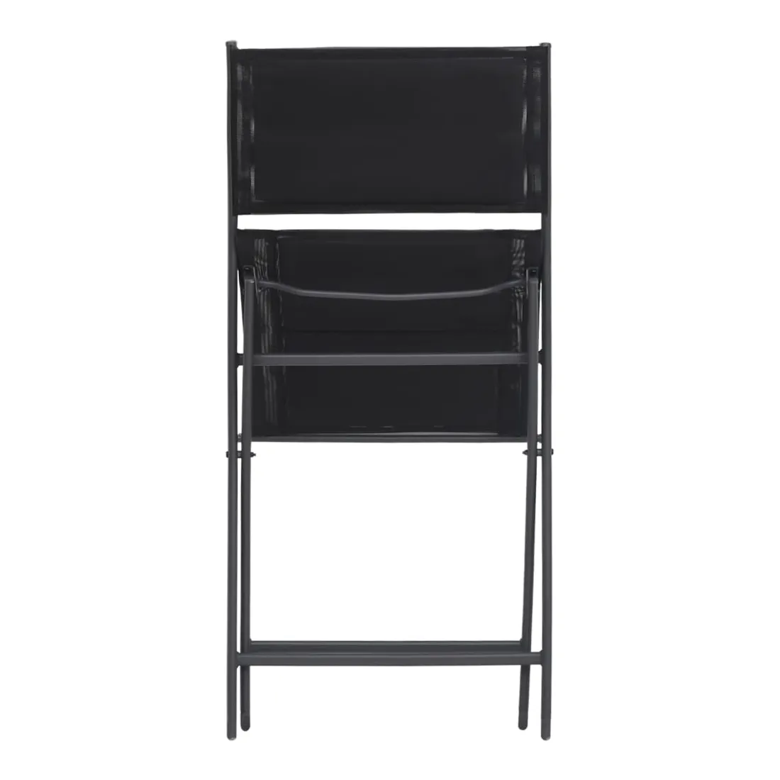 Cet ensemble de chaises pliables ajoute une touche de style industriel à votre espace de vie intérieur ou extérieur. Ces chaises de jardin ont un cadre en acier enduit de poudre, ce qui les rend robustes et stables. Ce qui rend les chaises d'extérieur encore plus confortables, c'est le tissu en textilène, qui est résistant à l'usure et aux intempéries. Lorsqu'elles ne sont pas utilisées, les chaises peuvent être pliées pour gagner de la place. Remarque : afin de prolonger la durée de vie de vos meubles d'extérieur, nous vous recommandons de les nettoyer régulièrement et de ne pas les laisser à l'extérieur sans protection inutilement.Nettoyage : Utiliser une solution savonneuse douce.Stockage : si possible, stockez dans un endroit frais et sec à l'intérieur. Si le produit est stocké à l'extérieur, protégez-le avec une housse imperméable. Essuyez et séchez l'excès d'eau ou de neige des surfaces planes après la pluie ou une chute de neige. Permettez une circulation d'air suffisante afin d'éviter les dommages liés à l'humidité.