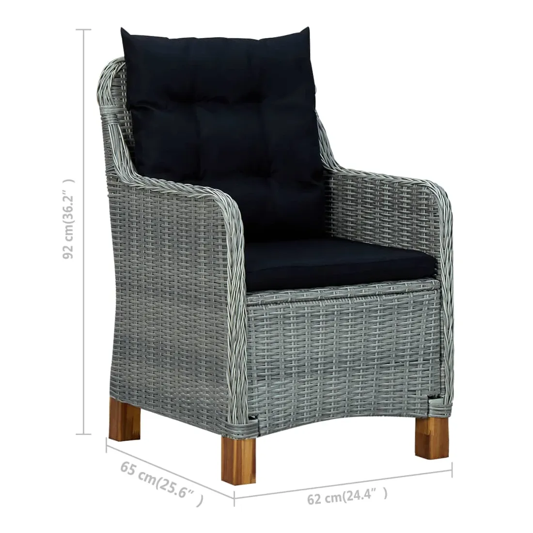 • Matériau : rotin PE rond, bois d'acacia massif, acier enduit de poudre